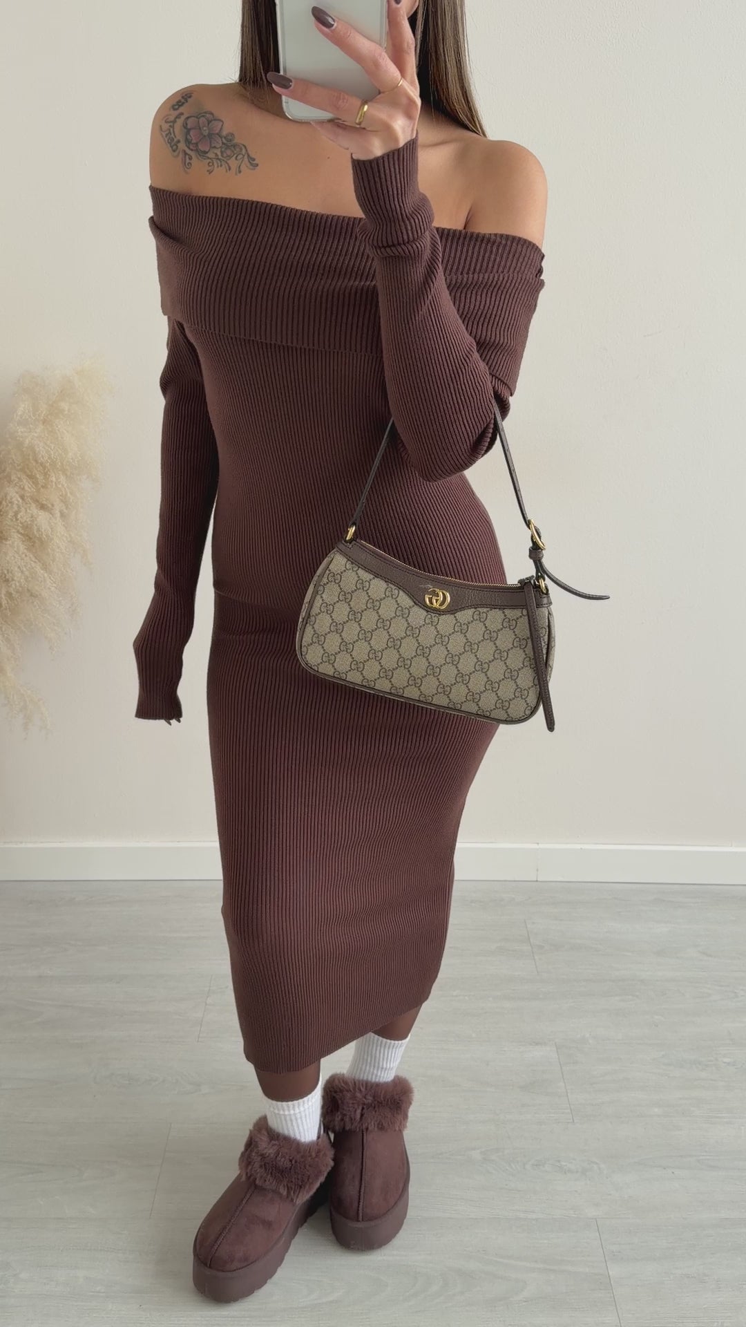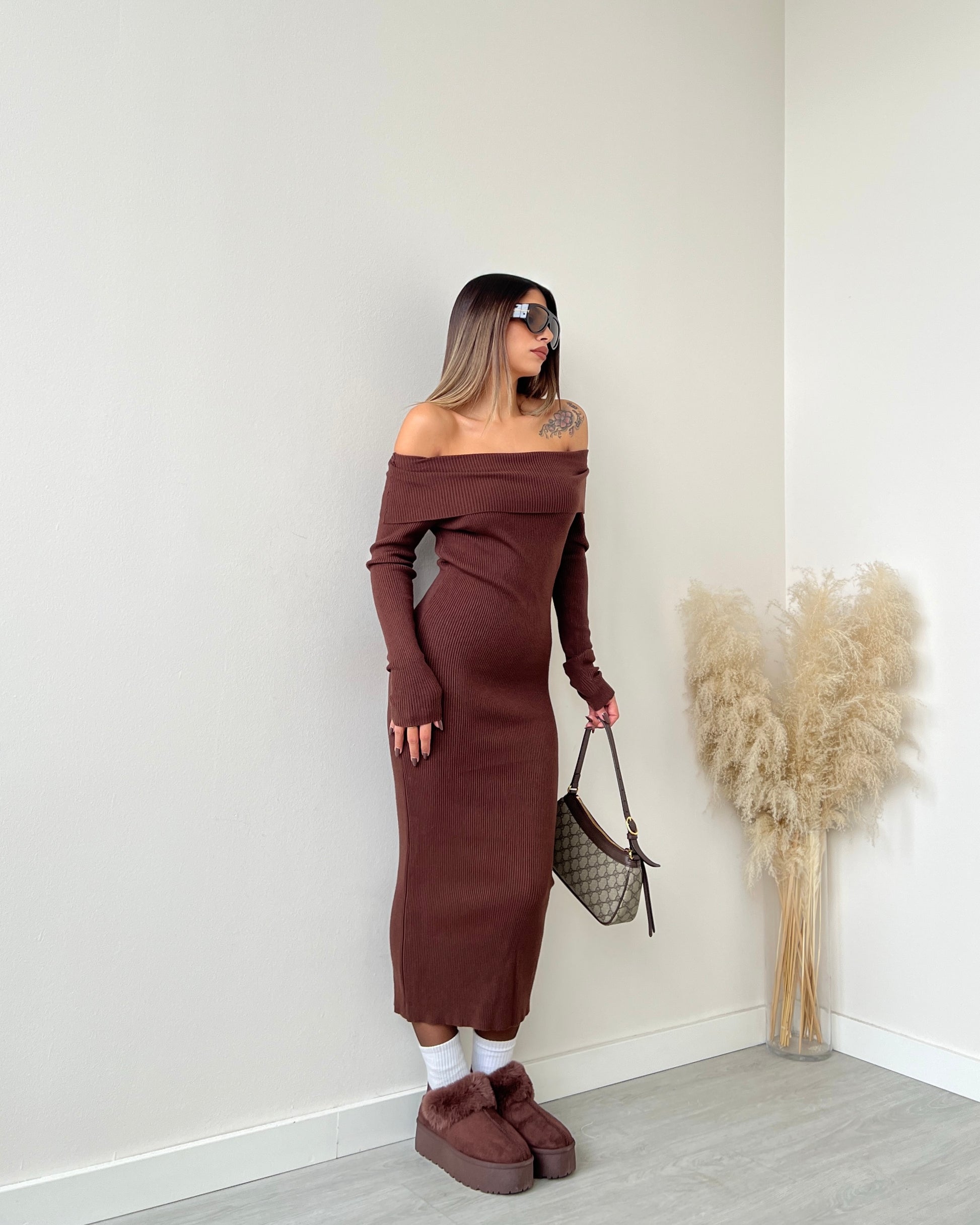 Abito con risvolto in maglia lungo caffè