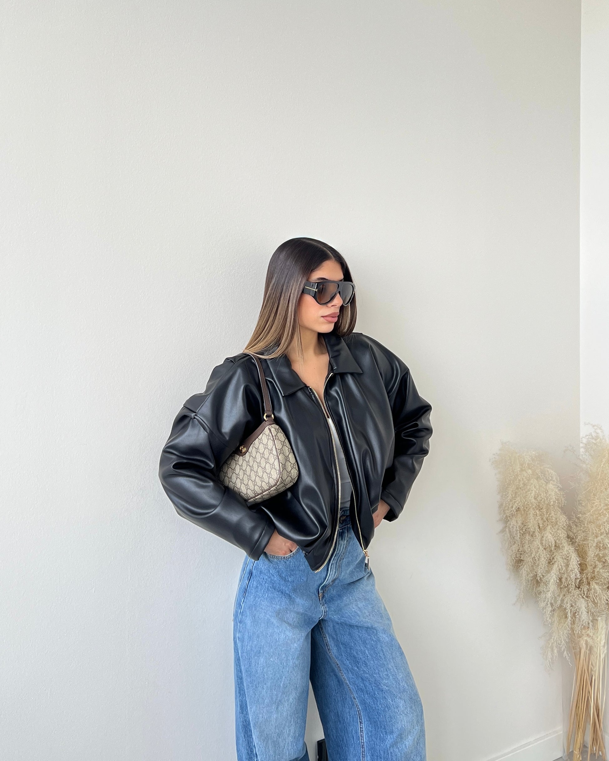 Bomber simil pelle New York imbottito nero