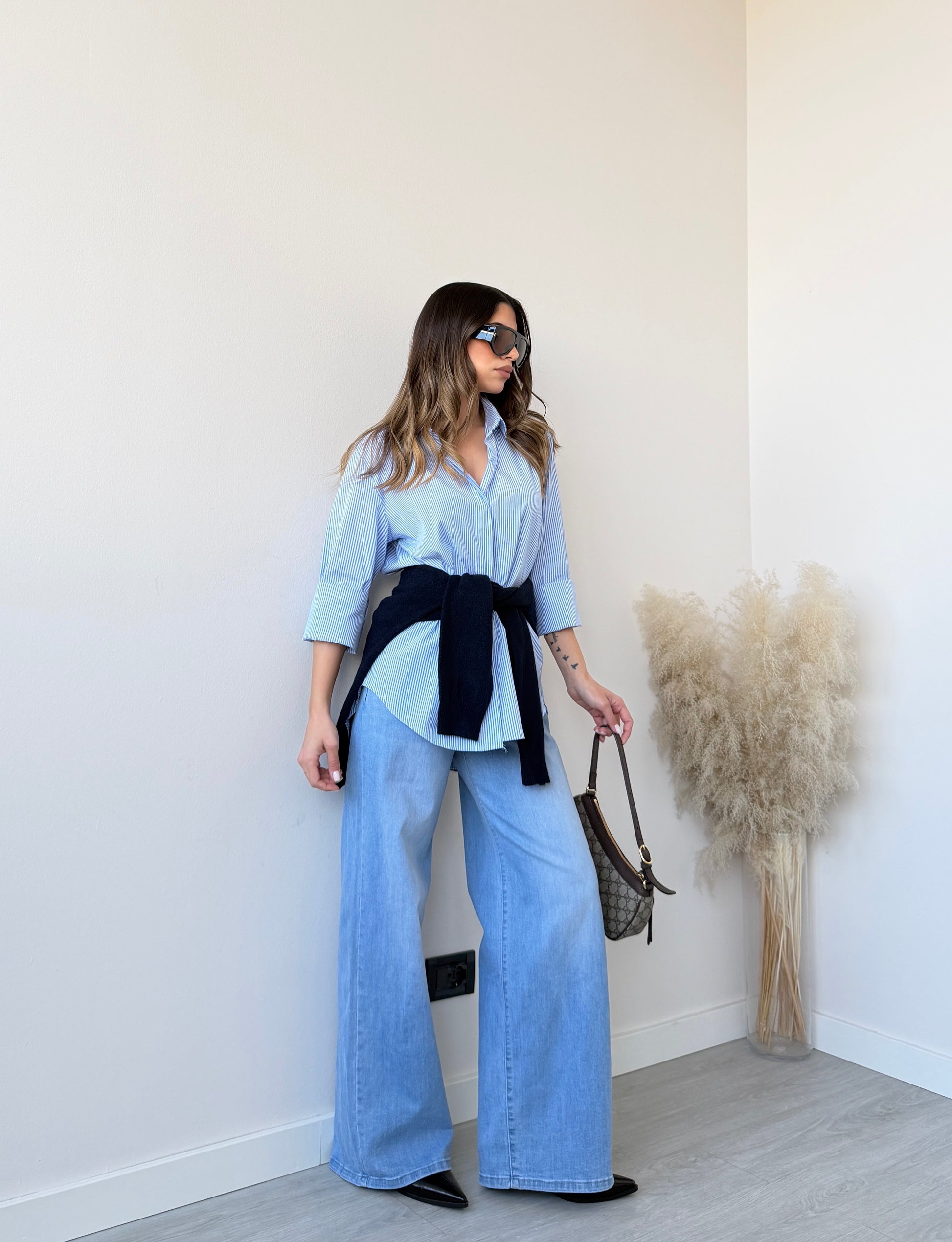 Camicia basica bacchettata celeste