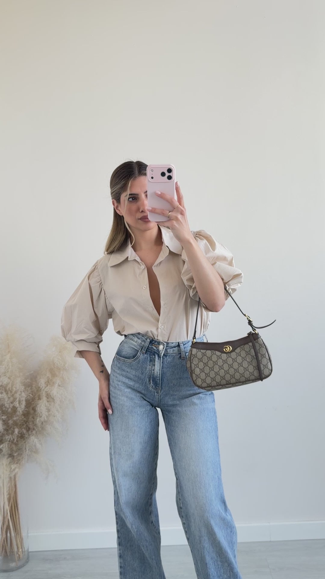 Camicia manica a palloncino beige