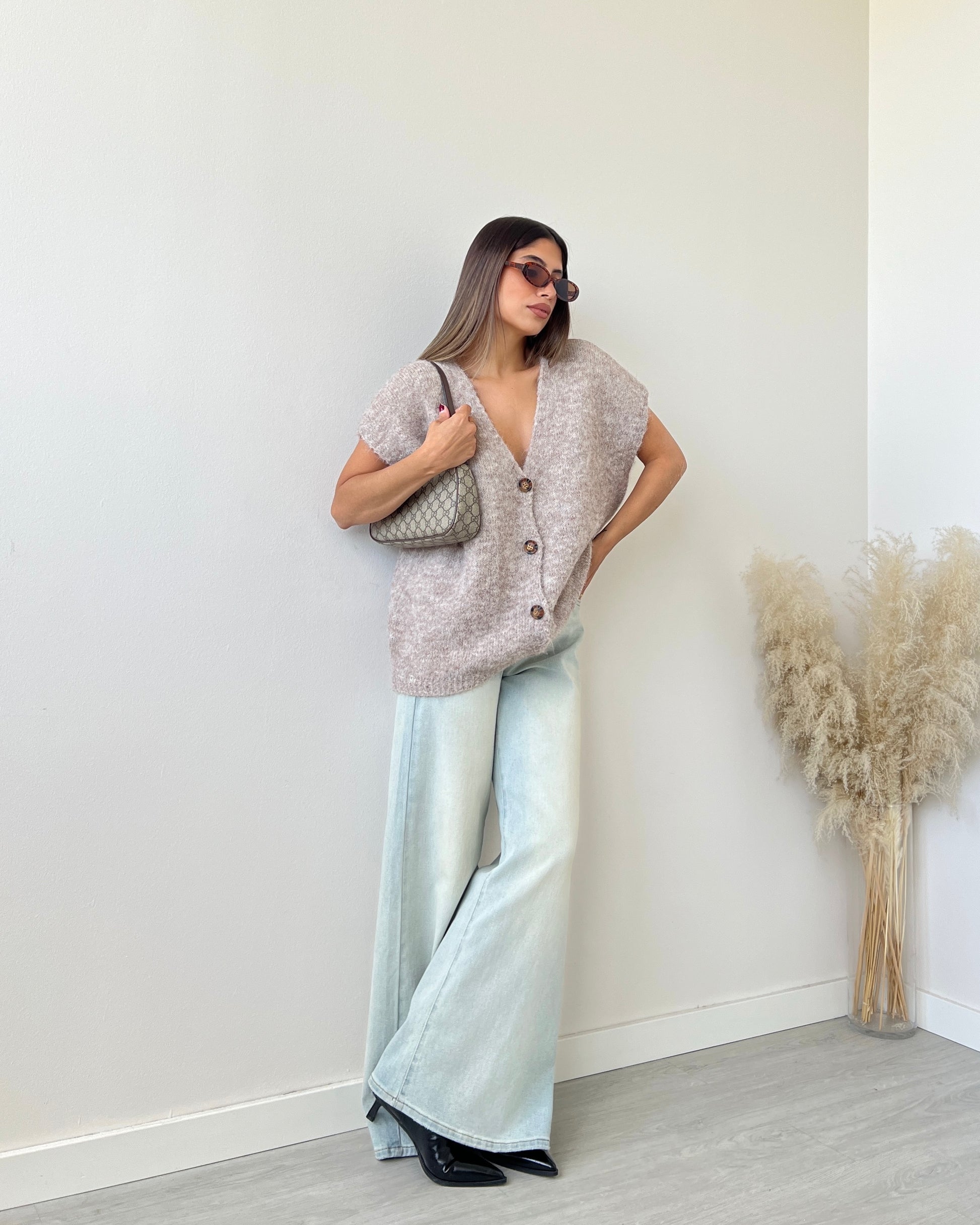 Cardigan con bottoni misto lana sabbia