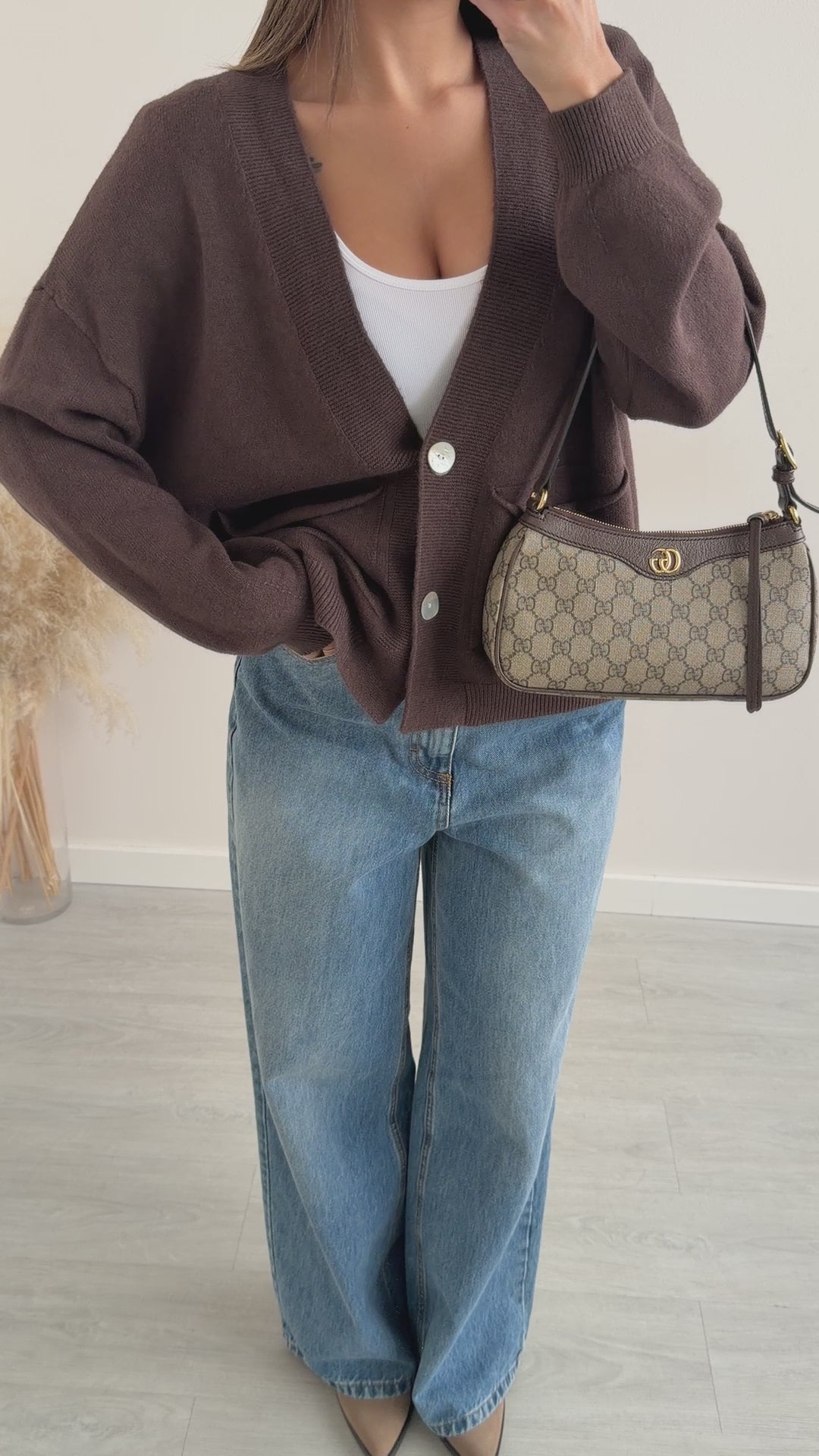 Cardigan due bottoni con tasche caffè