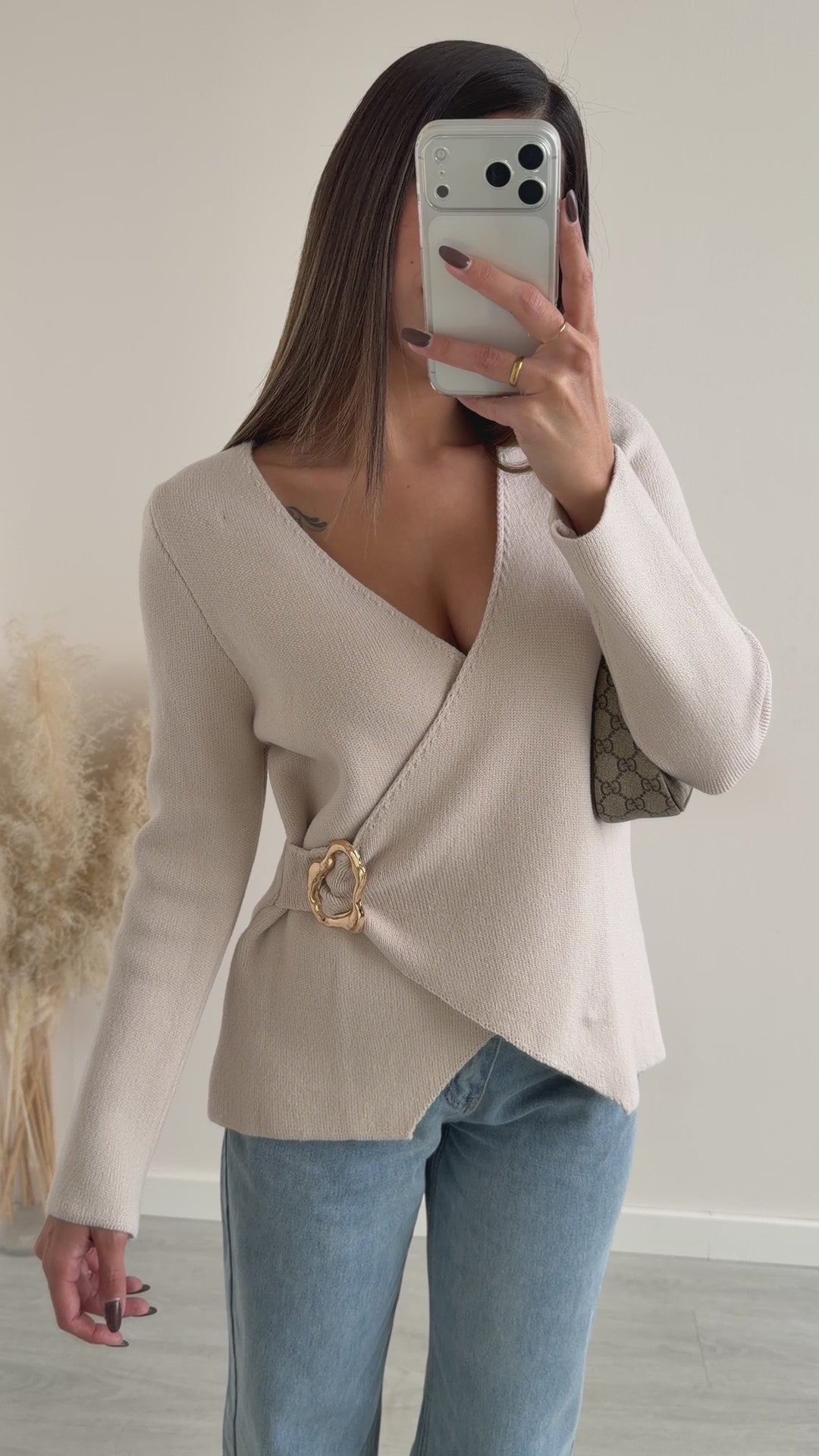 Cardigan Style con spilla sabbia