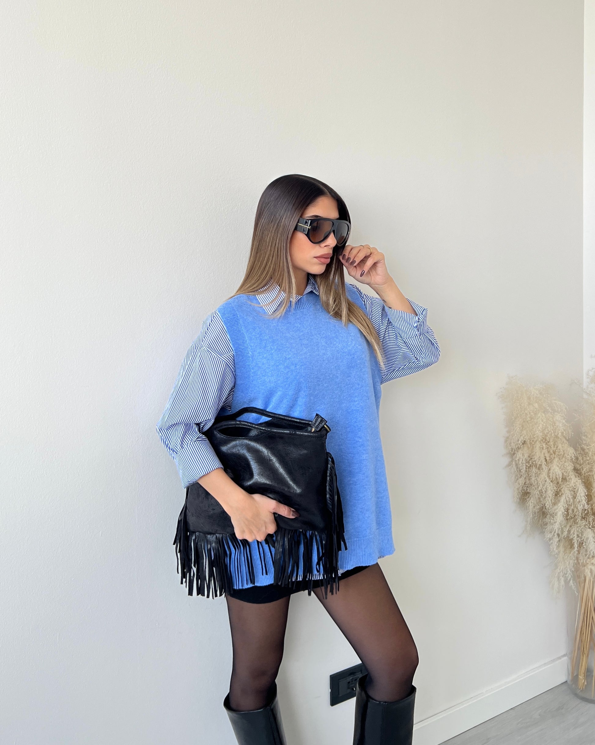 Erica è alta 1.64 ed è una taglia Xs(38). La nostra taglia unica è versatile, realizzata per adattarsi ad ogni fisicità. Se hai dubbi sulla vestibilità guarda i video scorrendo verso sinistra.