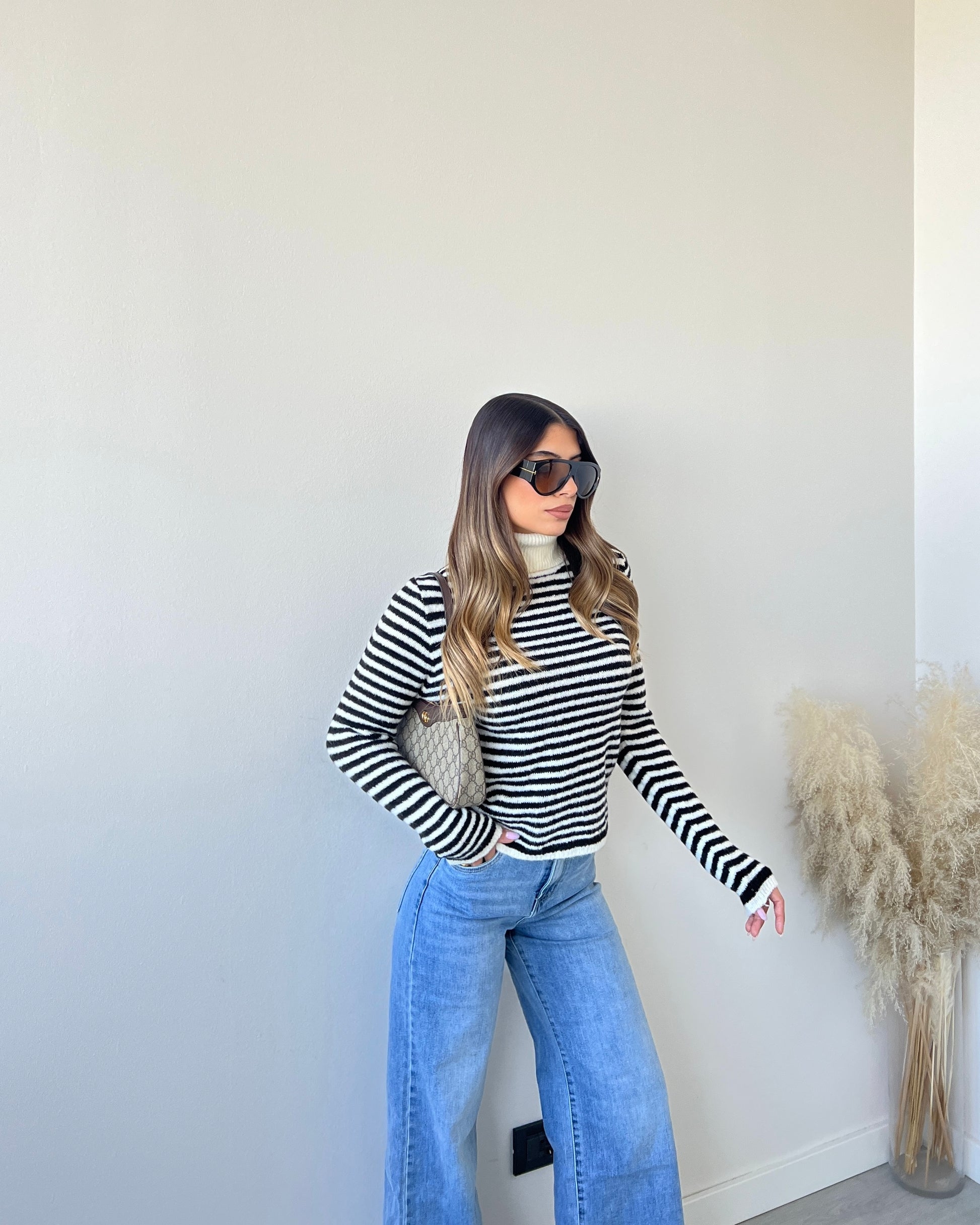 Dolcevita a righe bianco e nero