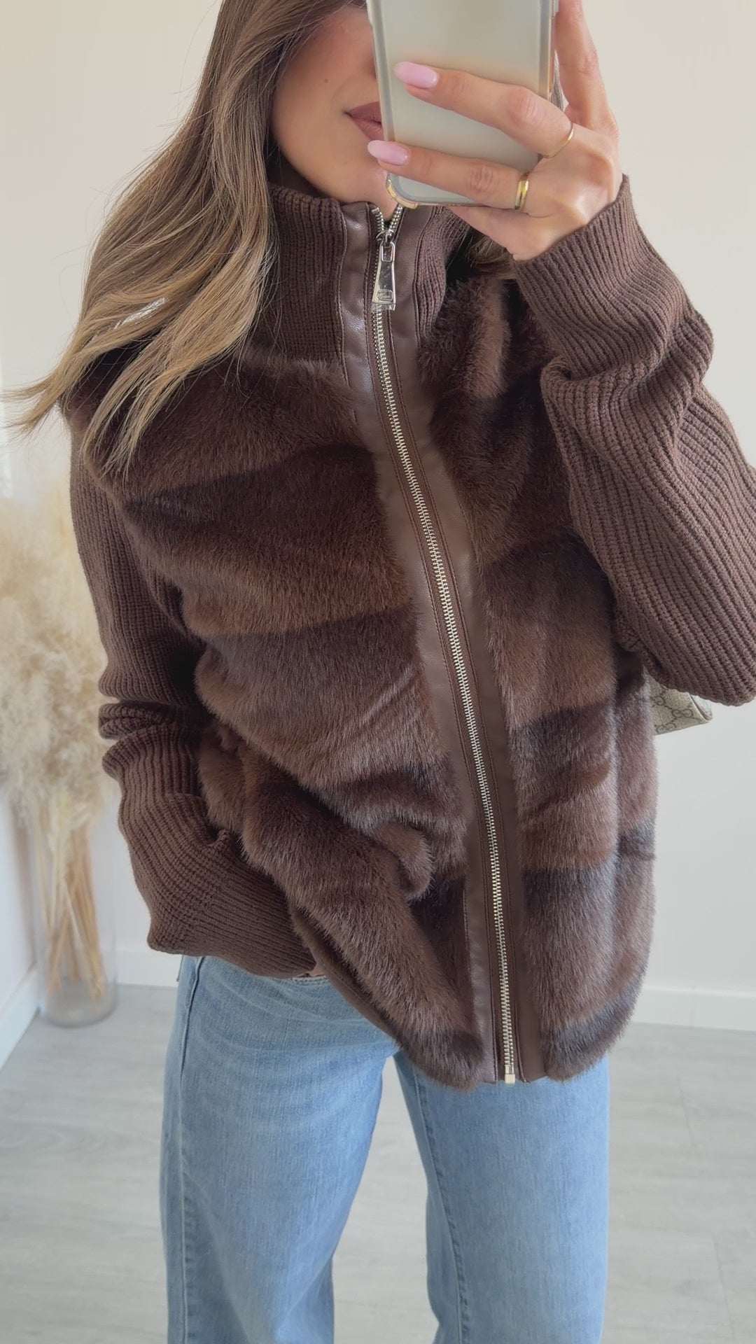 Giacca in maglia con ecopelliccia SH1851 caffè