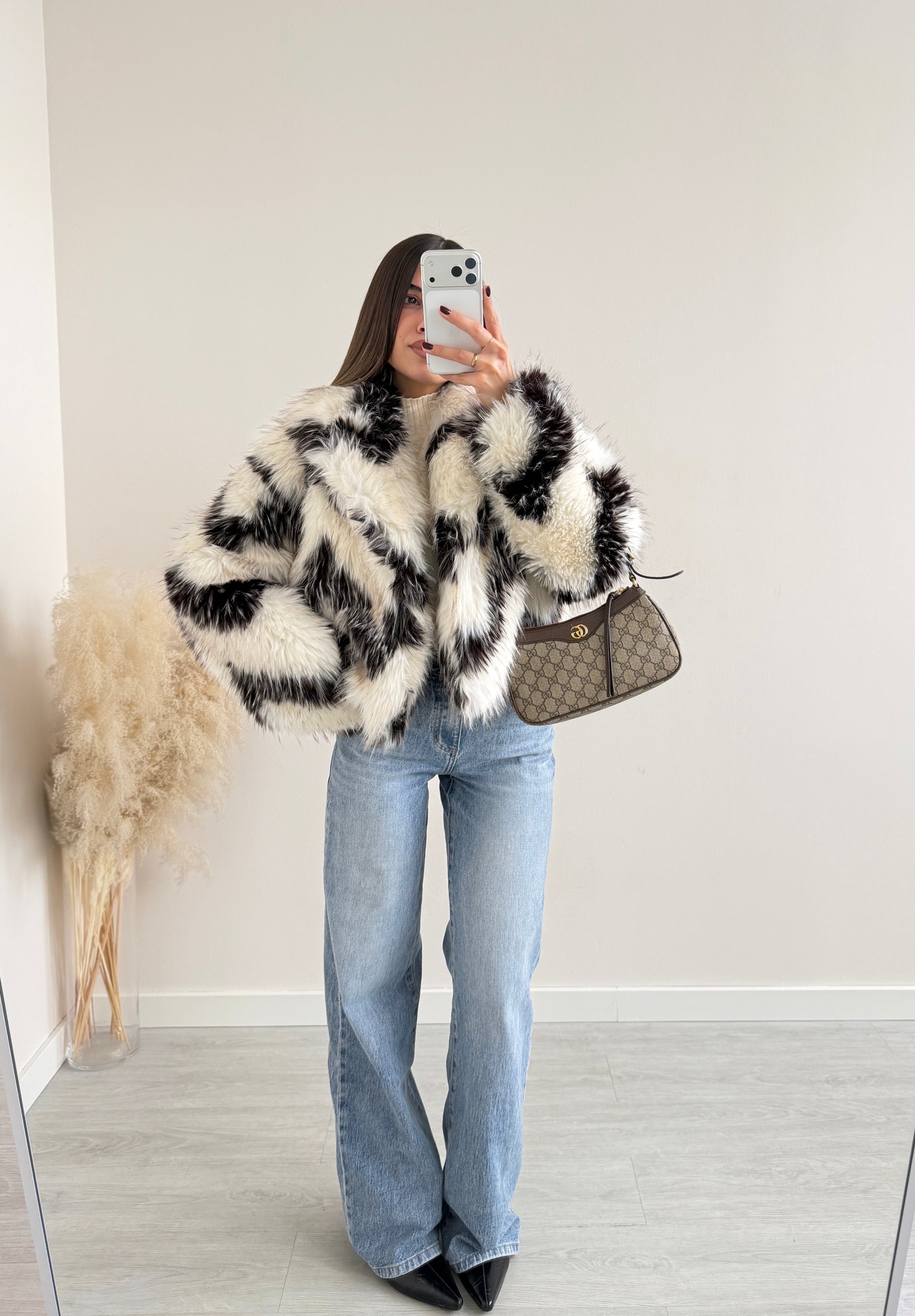 Ecopelliccia bicolore bianca