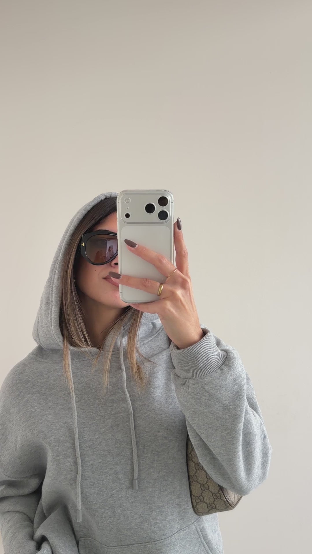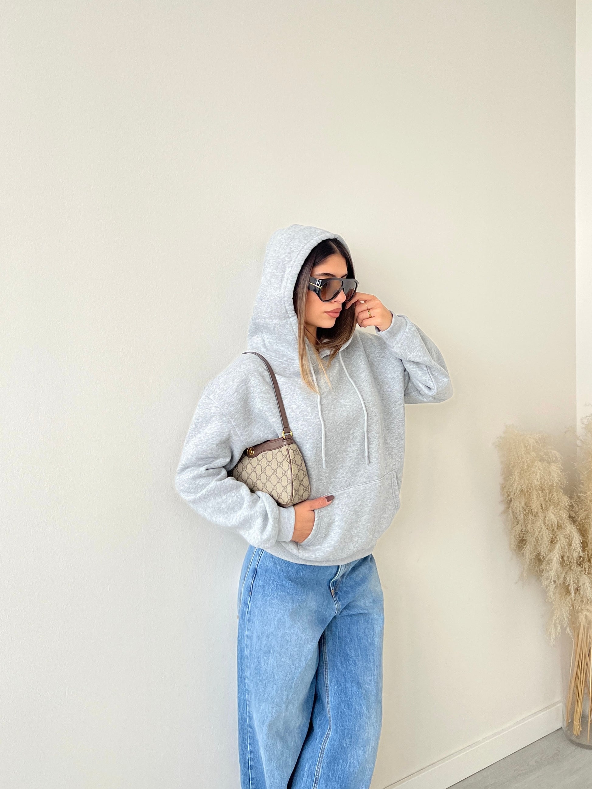 Felpa basica felpata con cappuccio grey