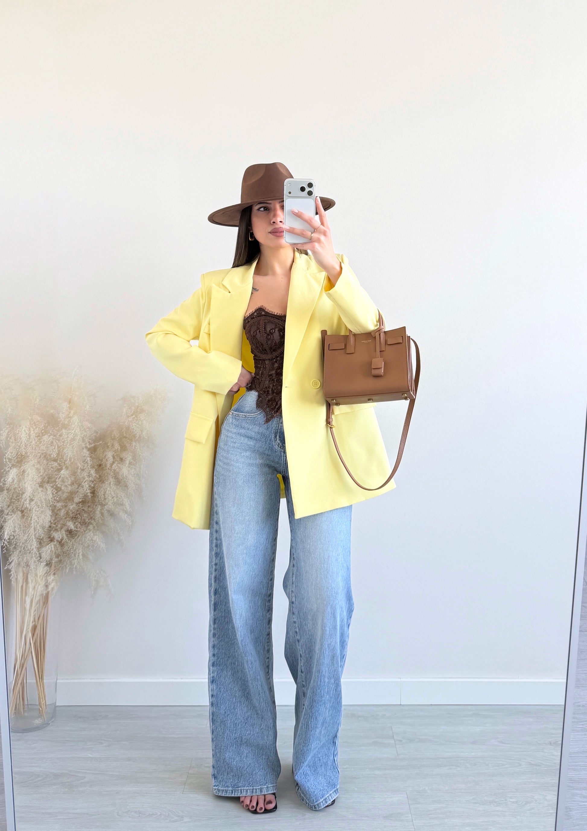 Giacca basic foderata doppiopetto gialla