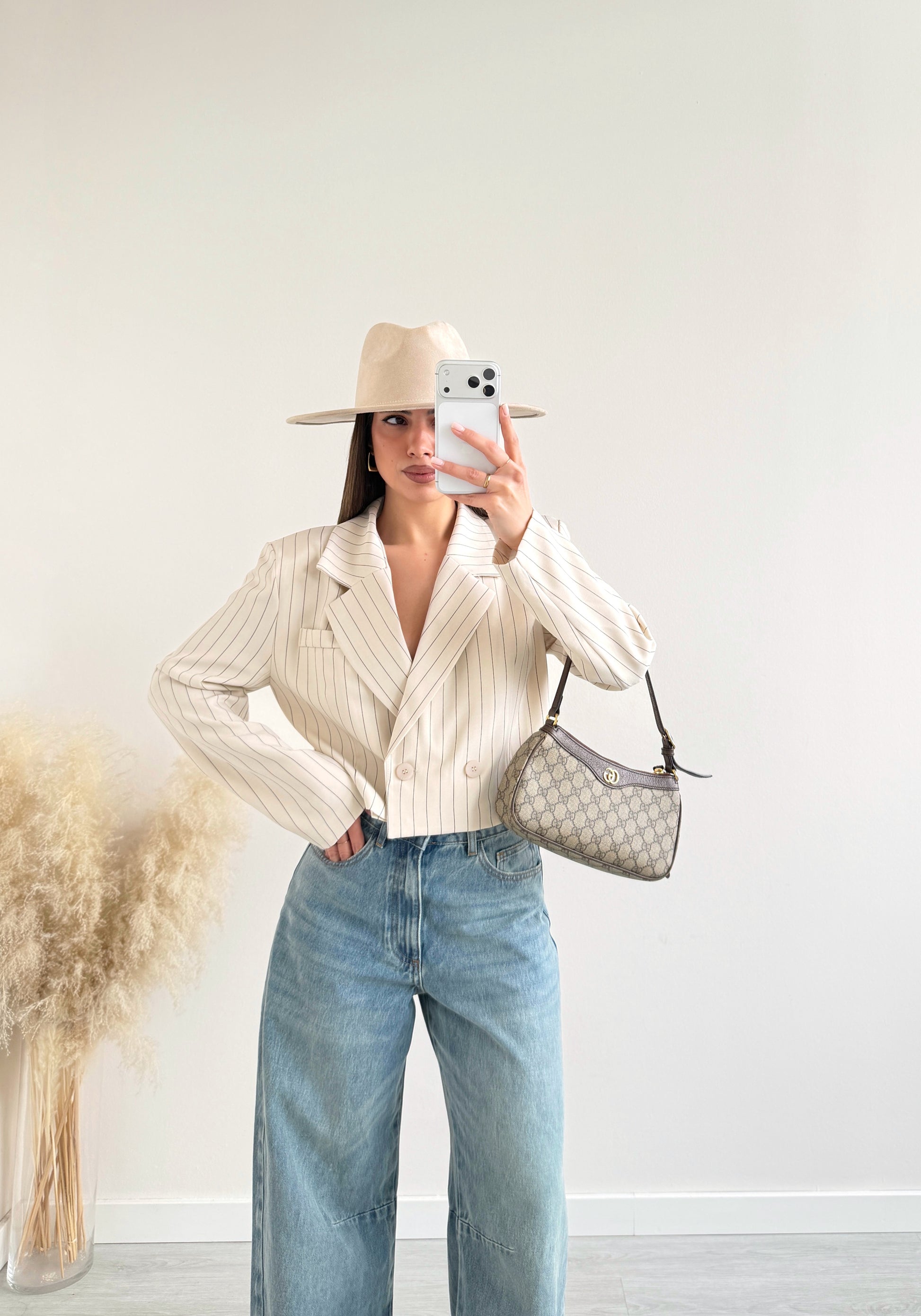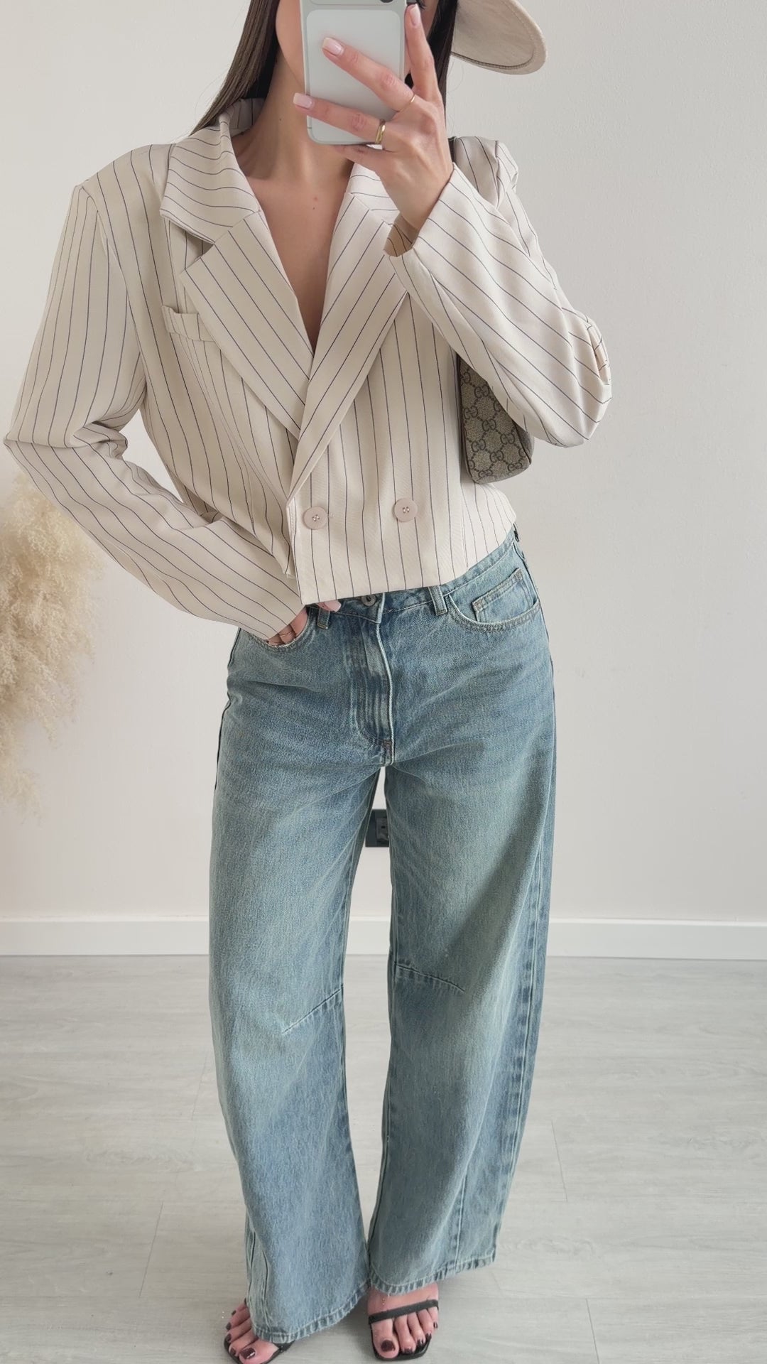Giacca corta a righe beige