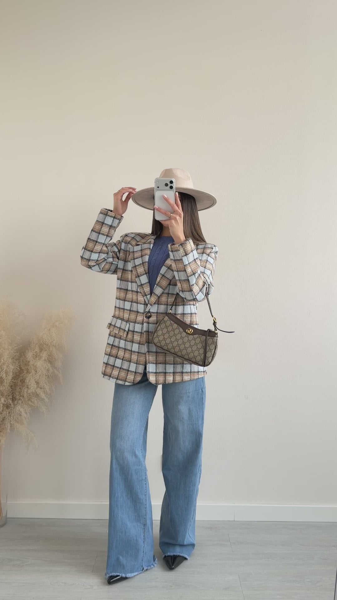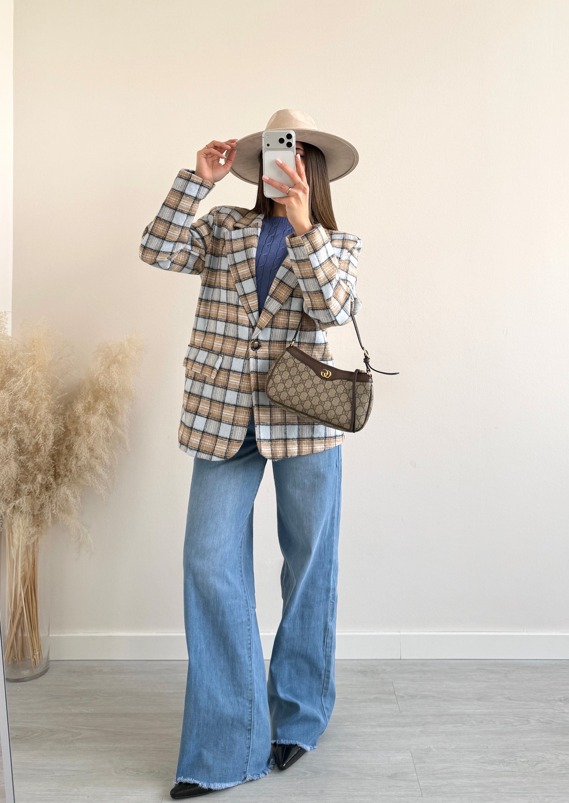 Giacca in cotone a quadri celeste
