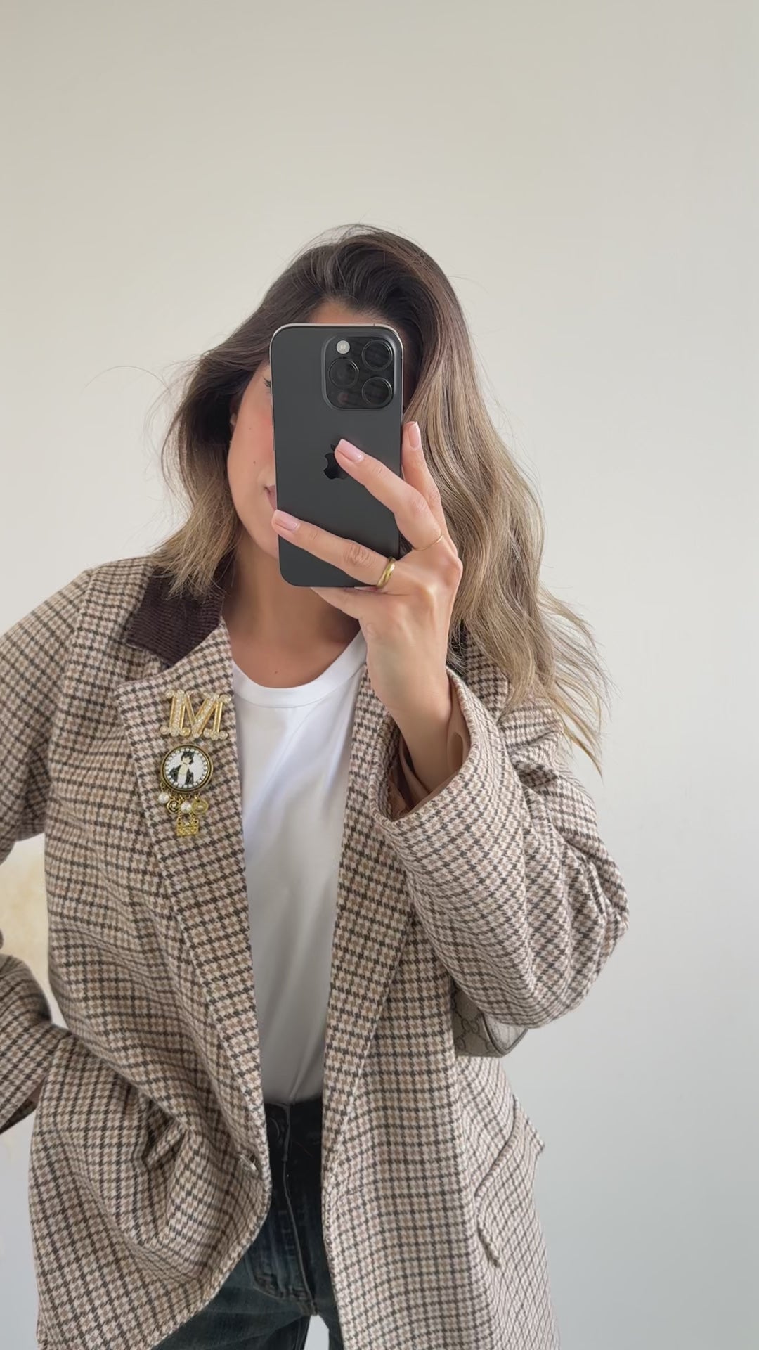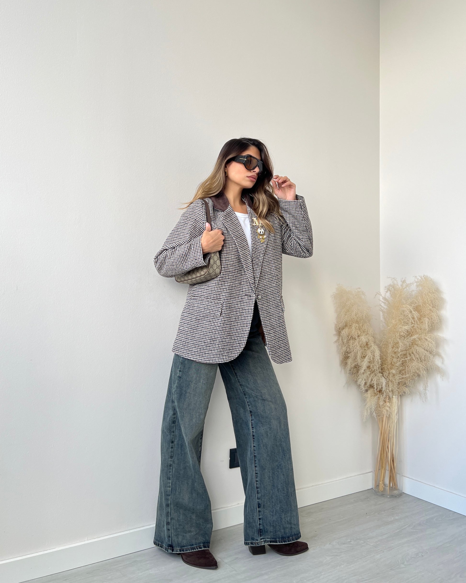 Giacca pesante pied de pooule con colletto in velluto e spille nera