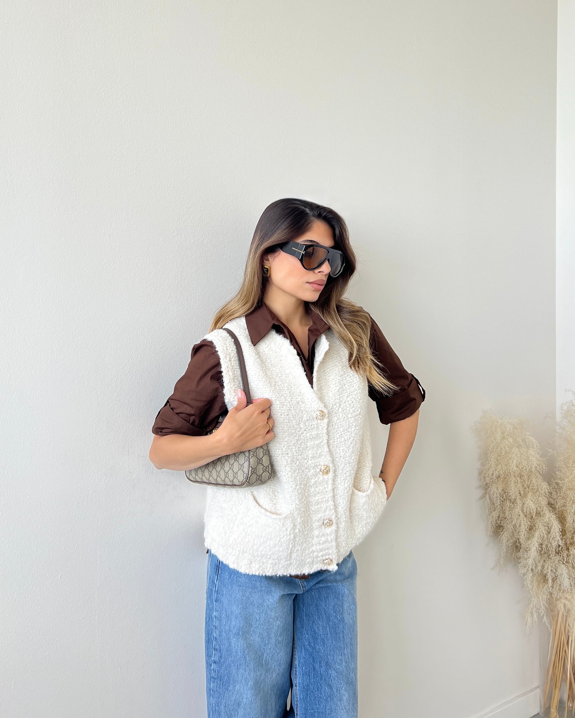 Gilet bouclè bottoni dorati burro