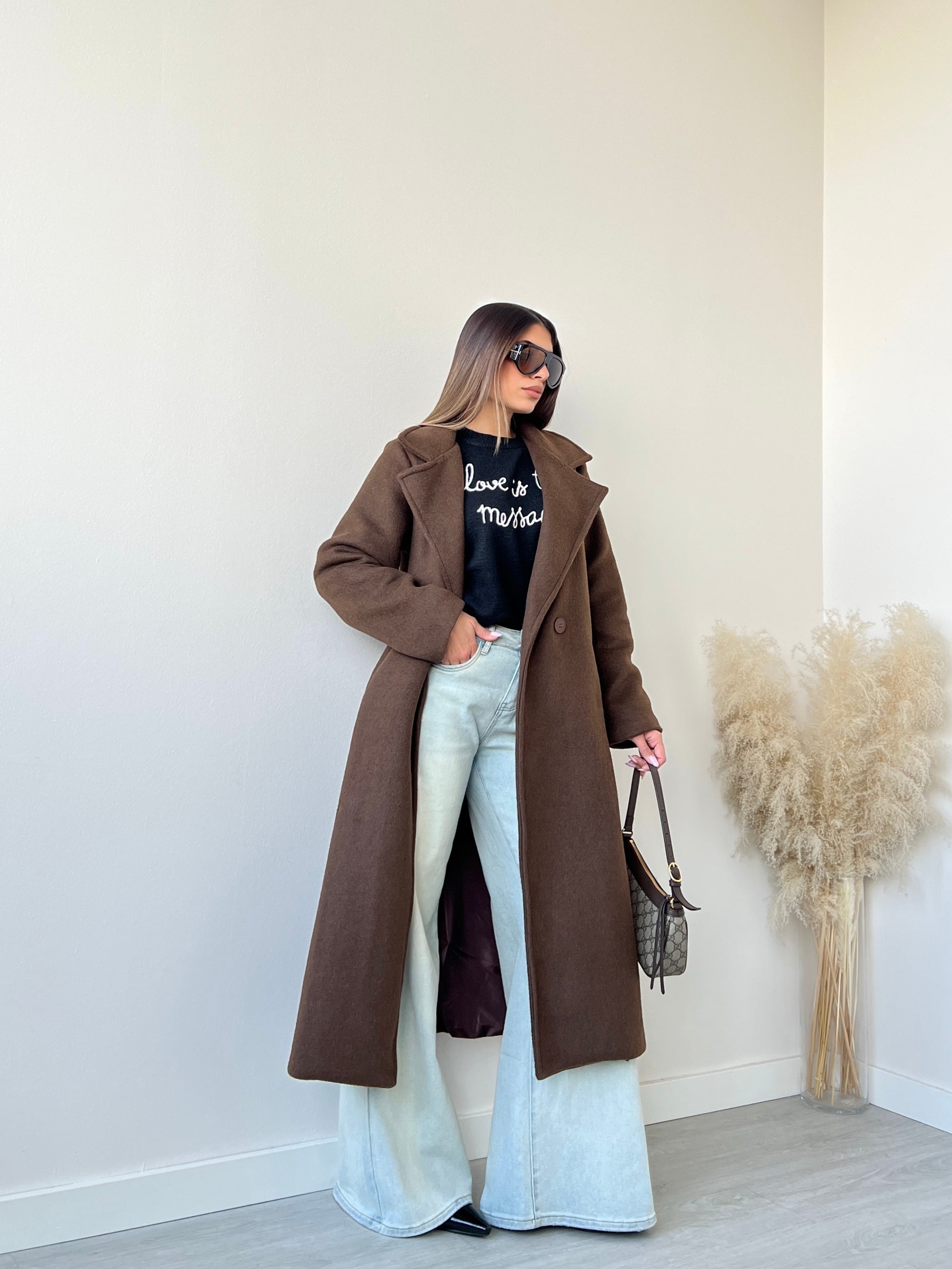 Cappotto in tessuto pesante caffè