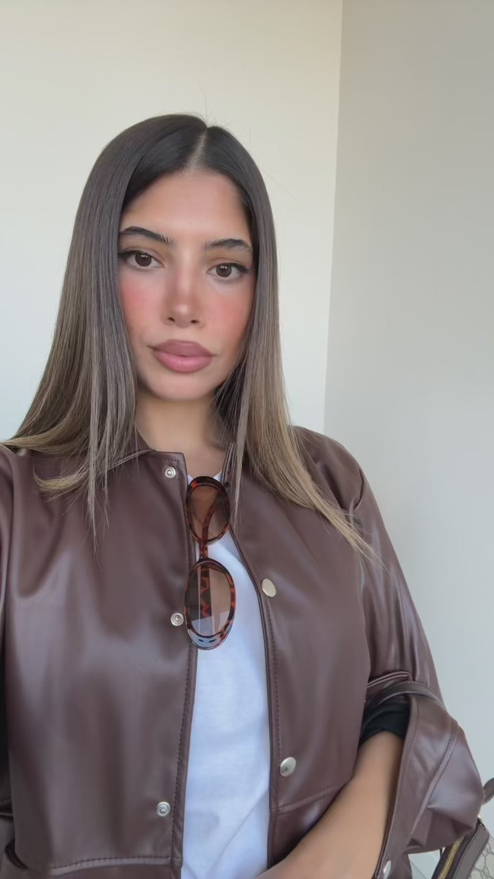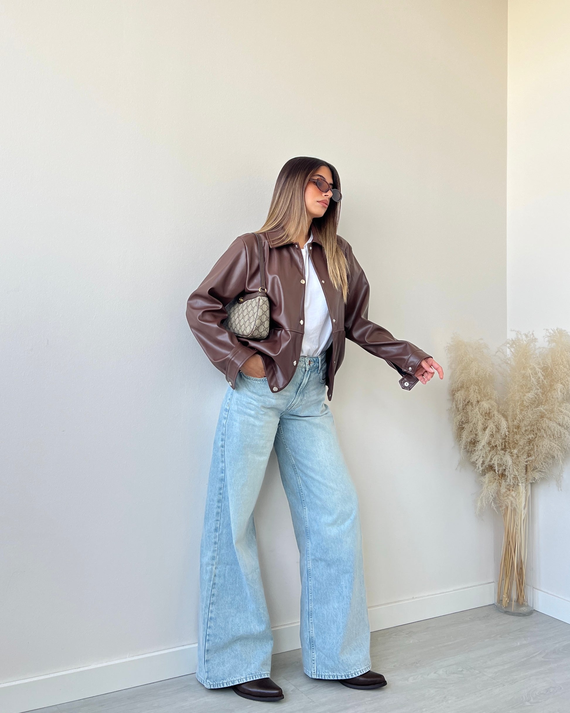 Giubbino in simil pelle con bottoni e tasche testa di moro