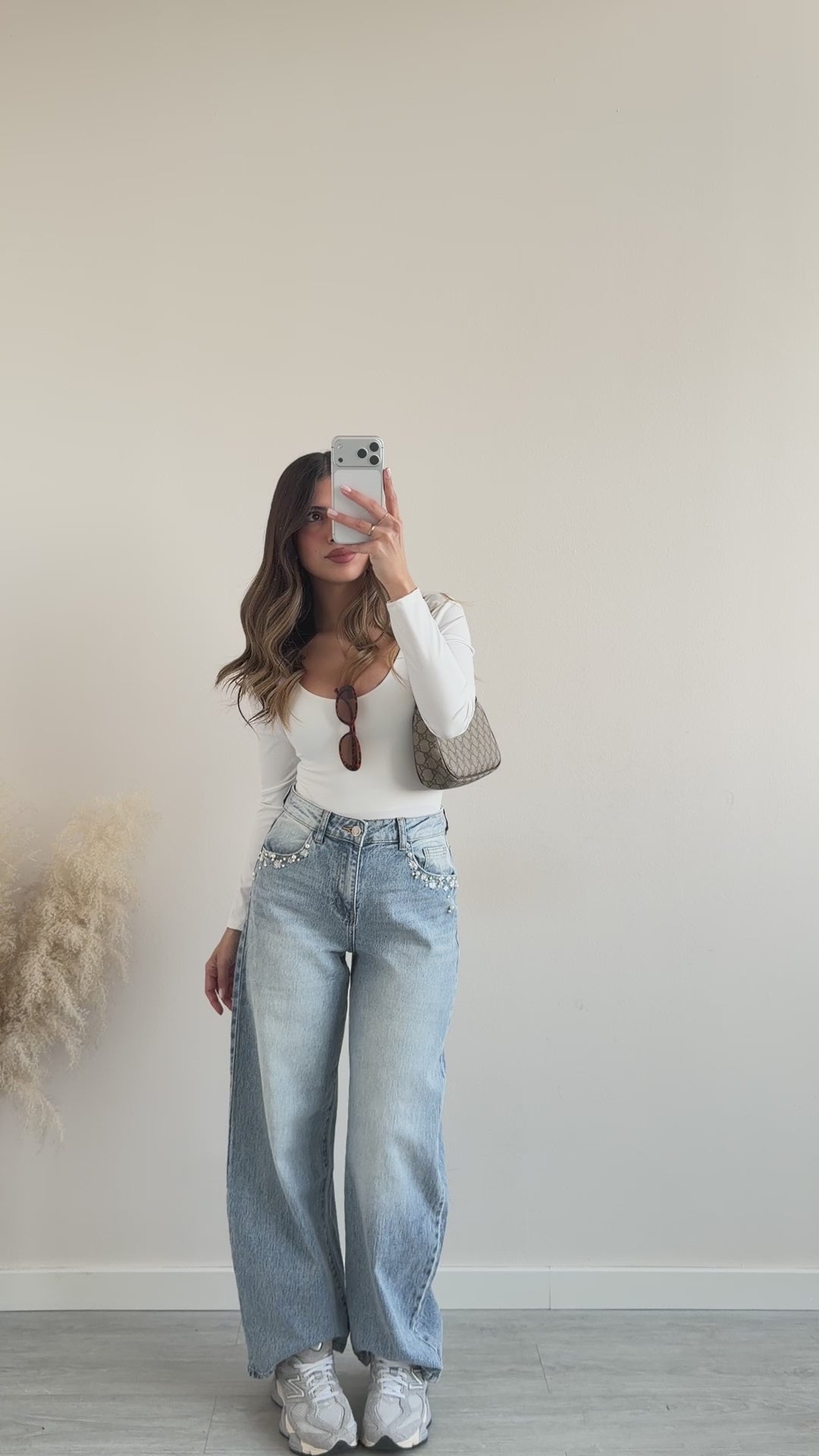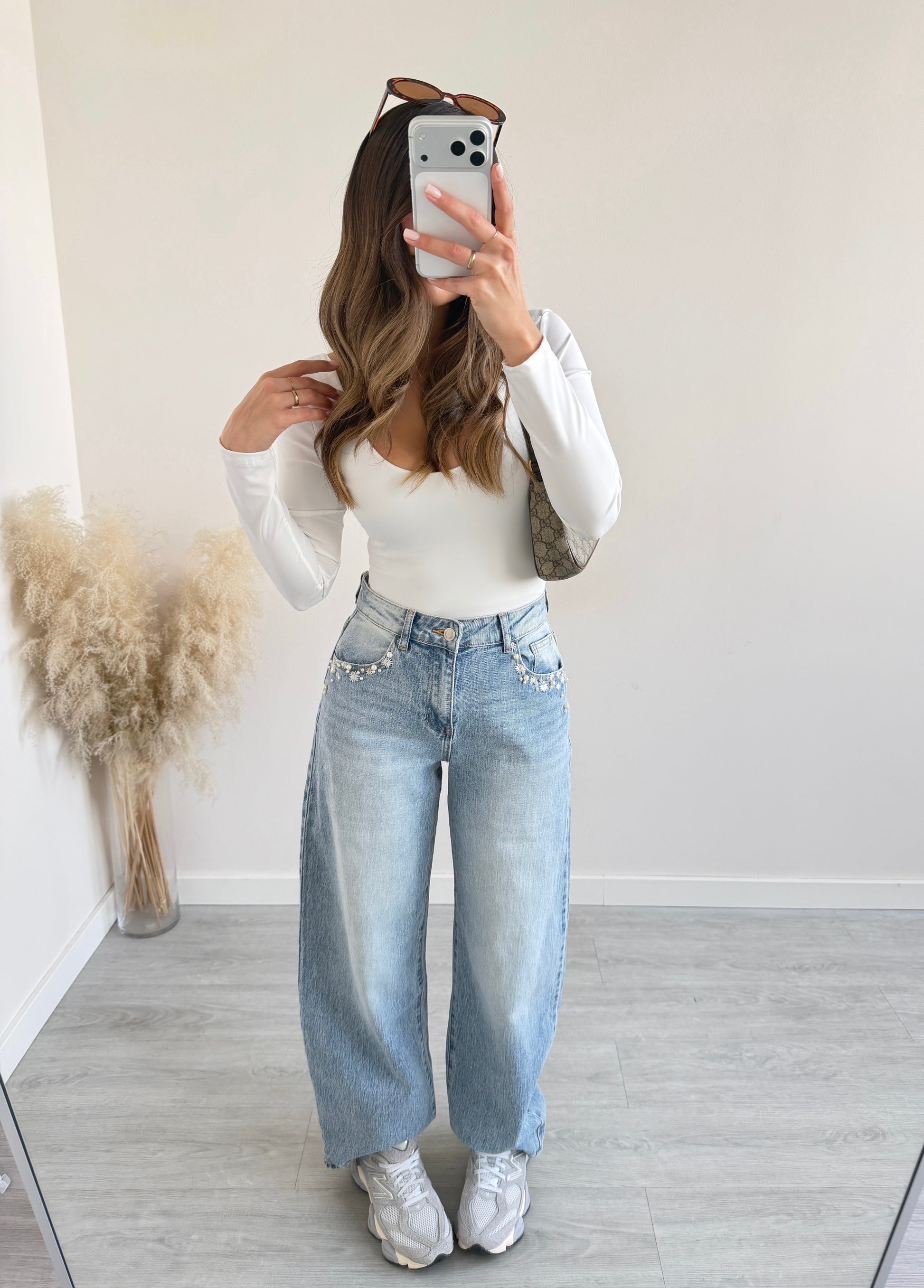 Jeans wide leg con margherite lavaggio chiaro MC5339