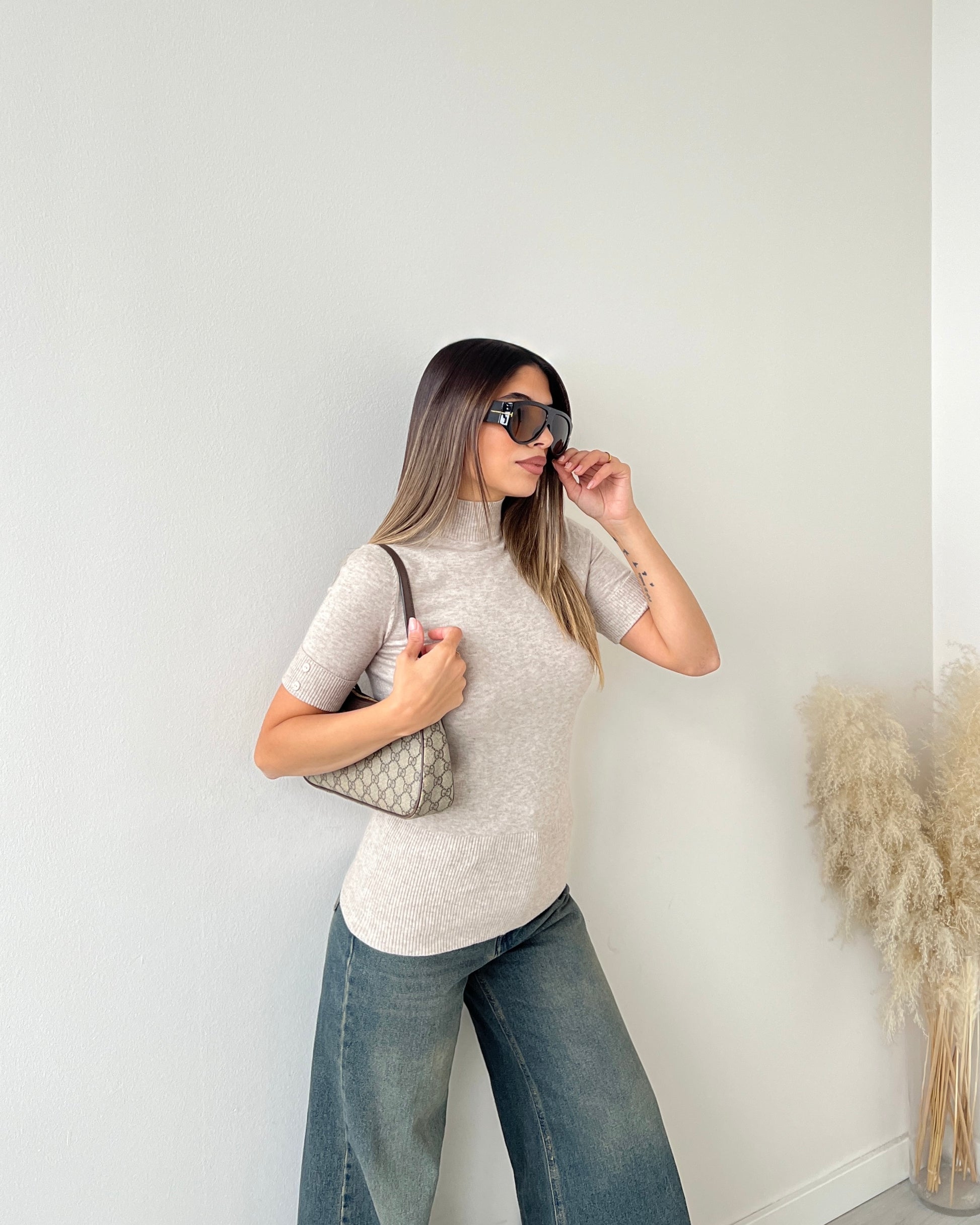 Maglia a collo alto a manica corta sabbia