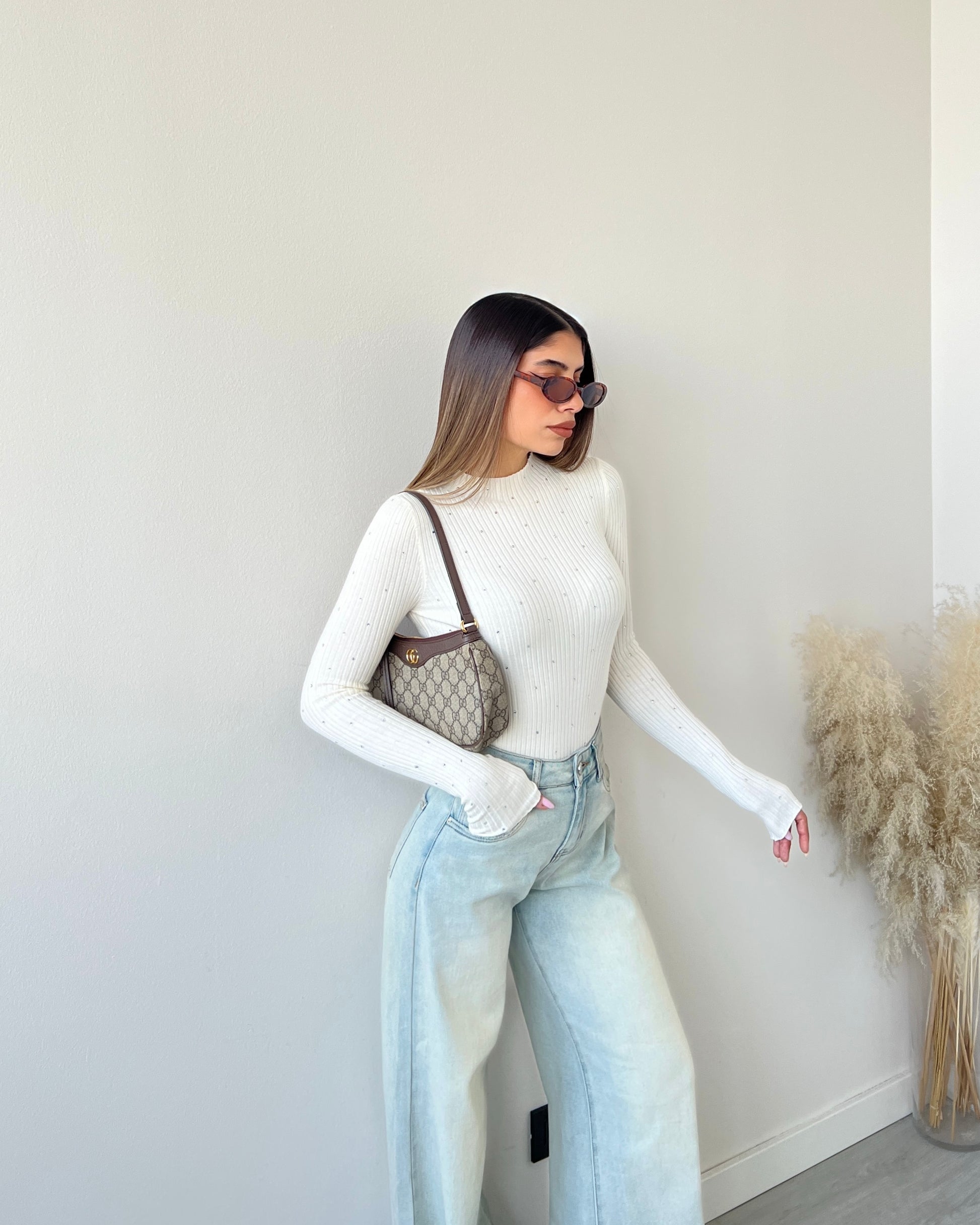 Erica è alta 1.64 ed è una taglia Xs(38). La nostra taglia unica è versatile, realizzata per adattarsi ad ogni fisicità. Se hai dubbi sulla vestibilità guarda i video scorrendo verso sinistra.