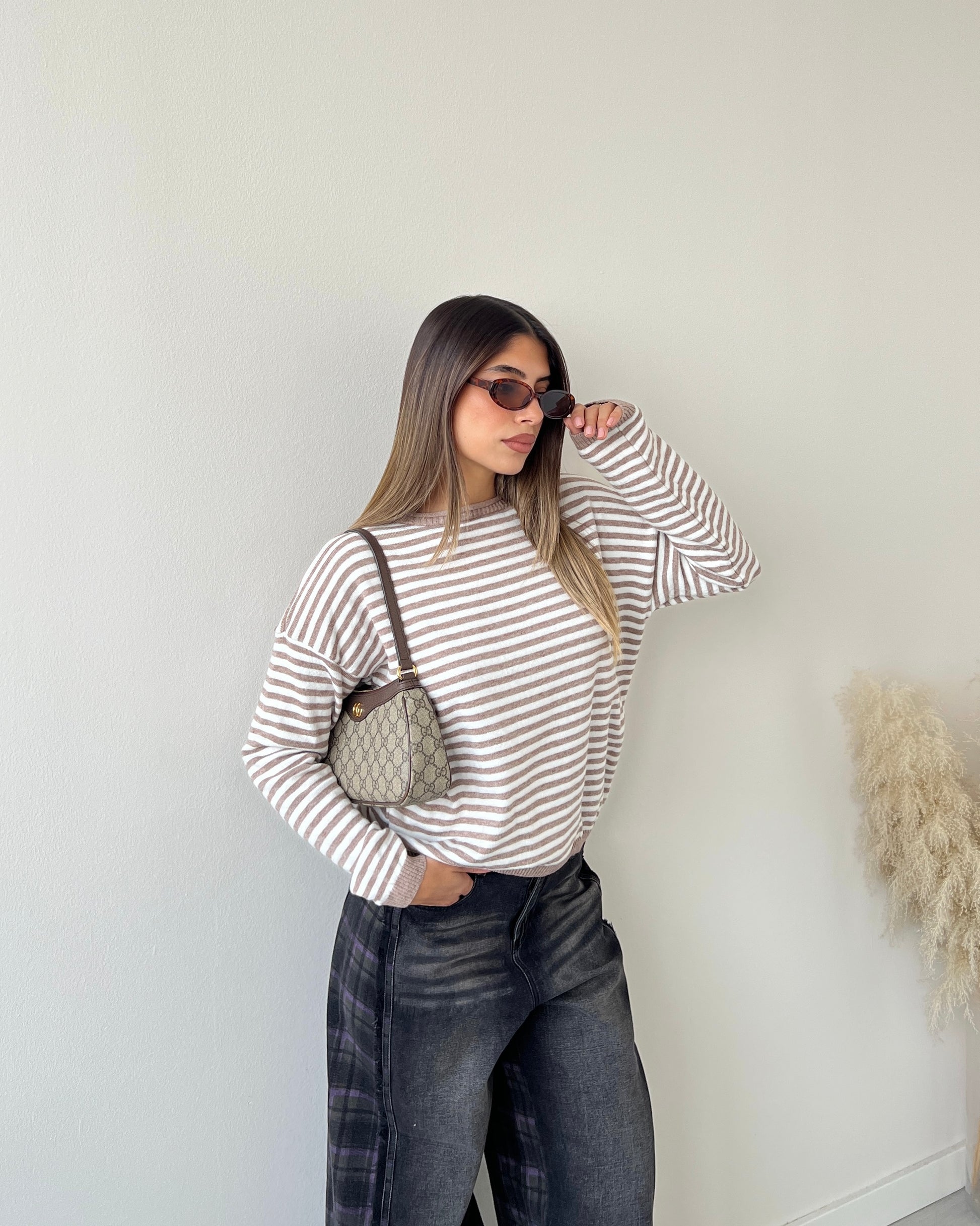 Maglioncino a righe camel e panna