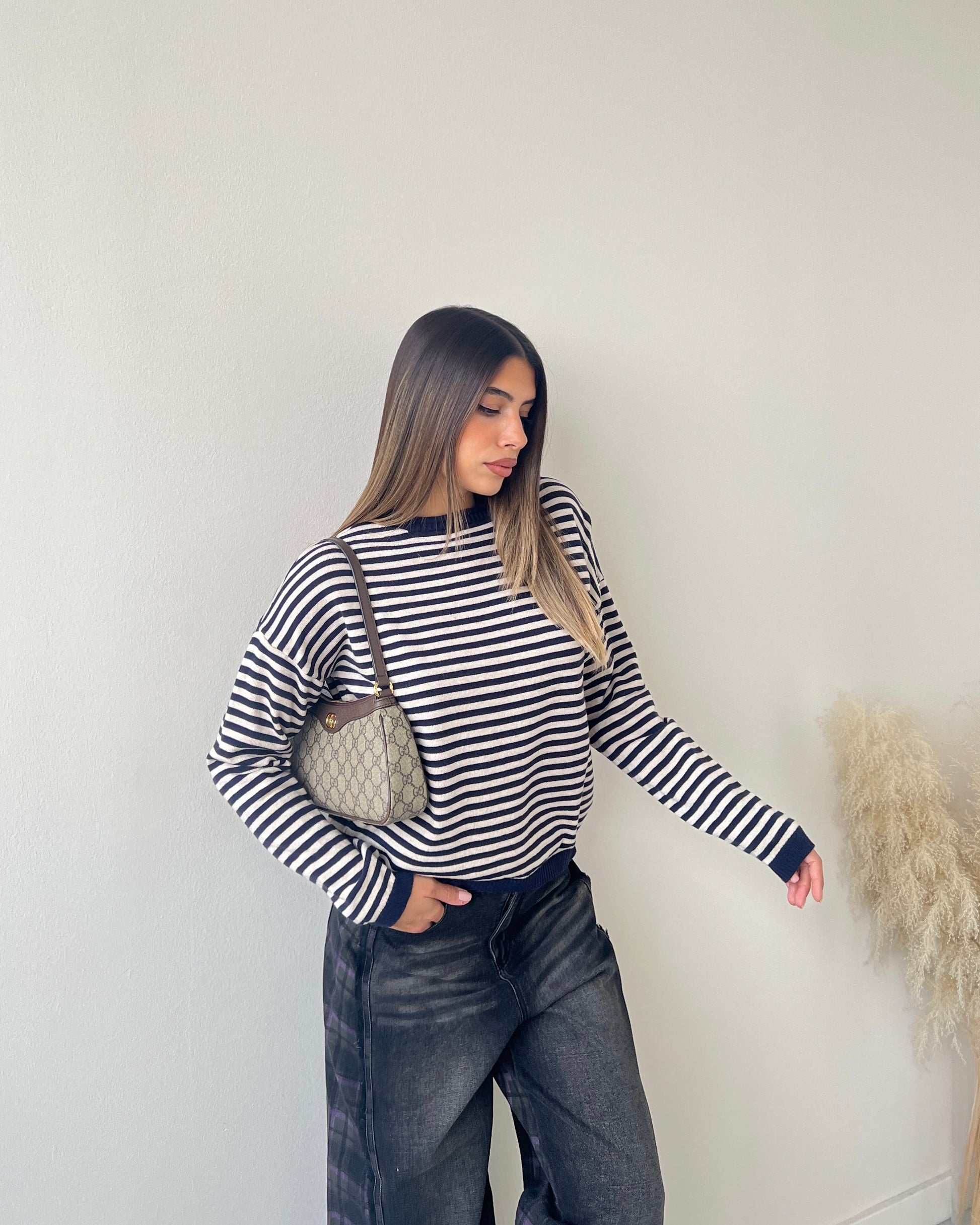 Maglioncino a righe blu e beige