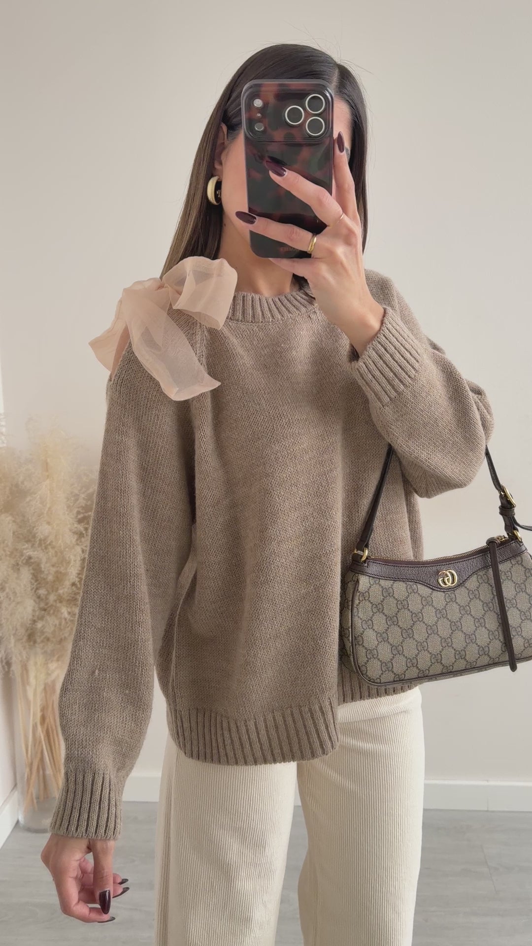 Pullover con fiocco camel