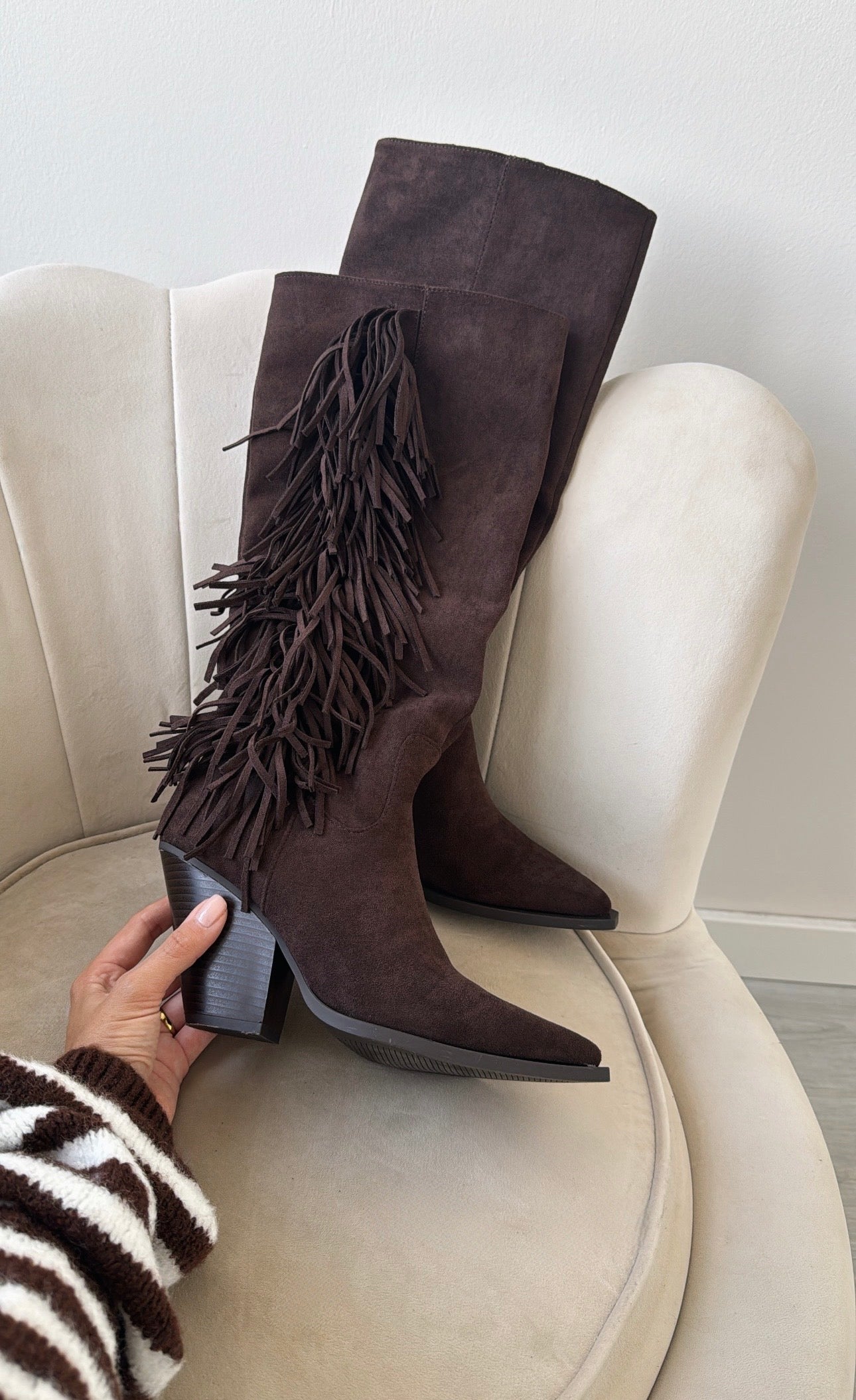 Camperos scamosciato con frange testa di moro 2532A