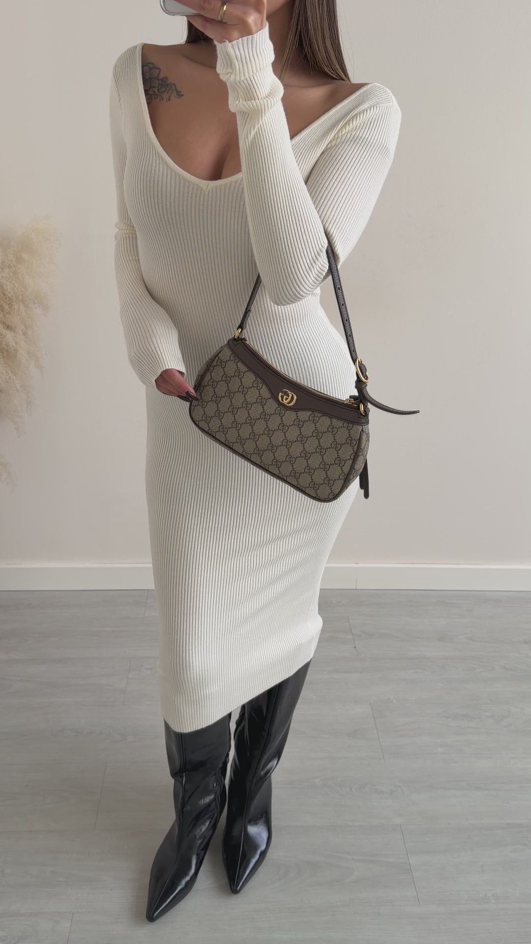 Abito in maglia scollo a v a costine crema