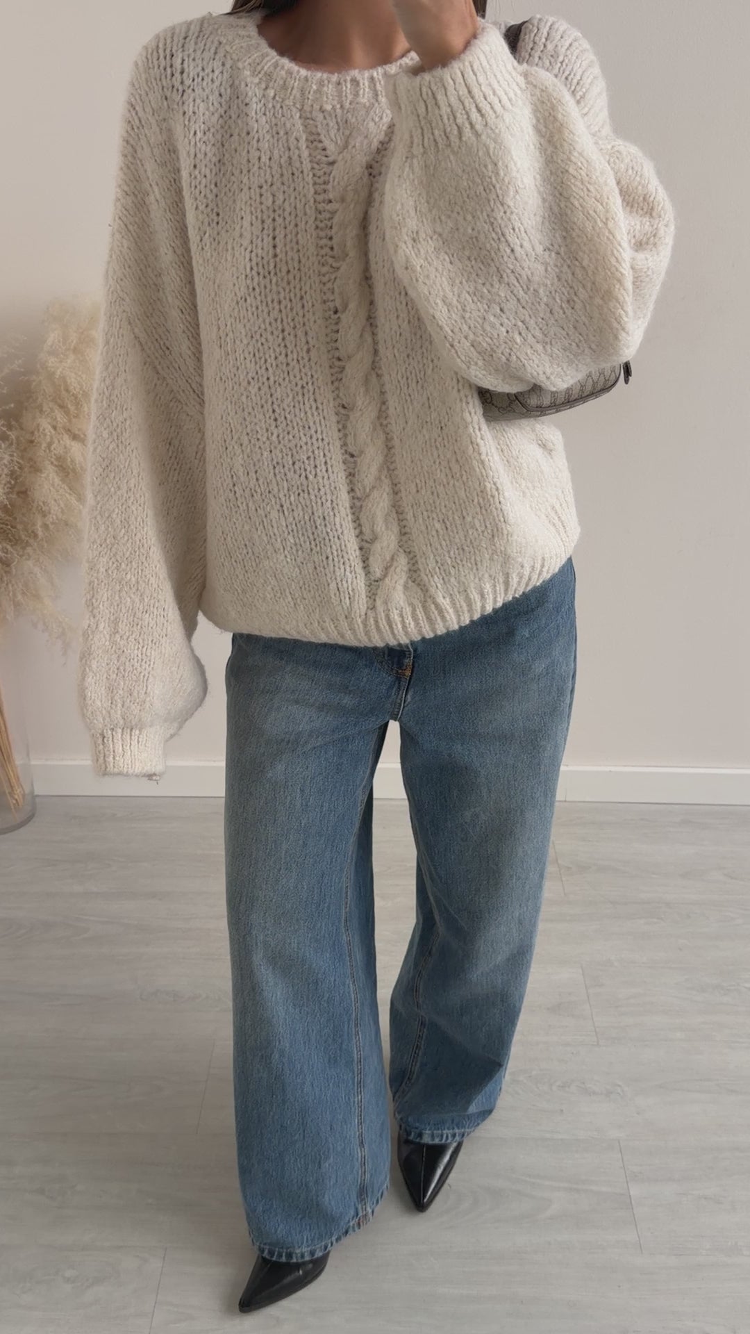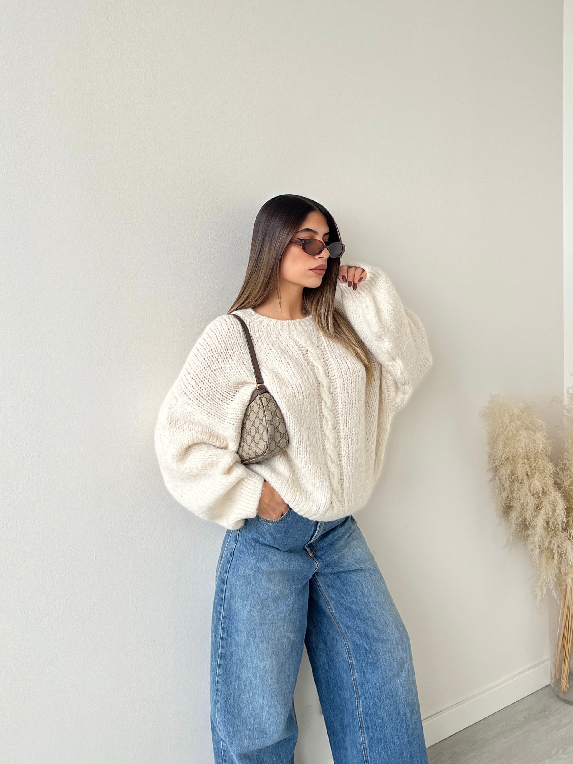 Maglione con treccia crema