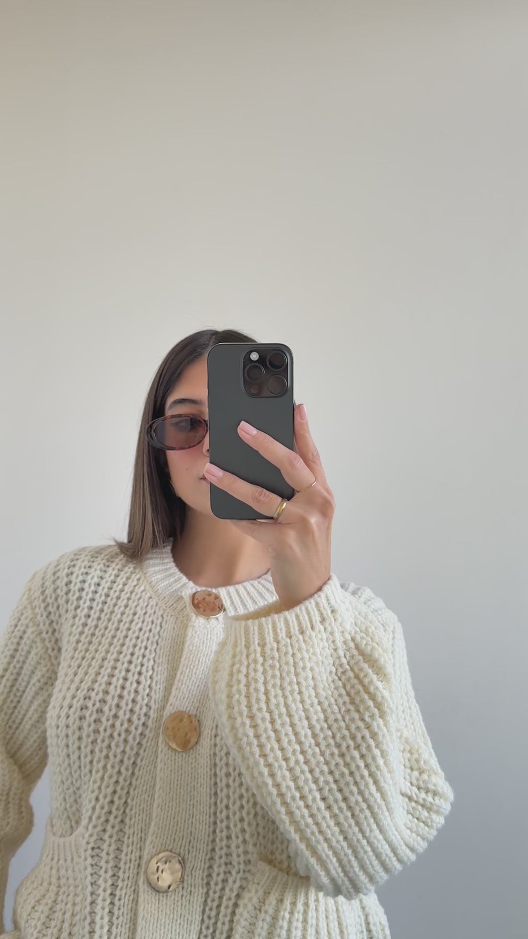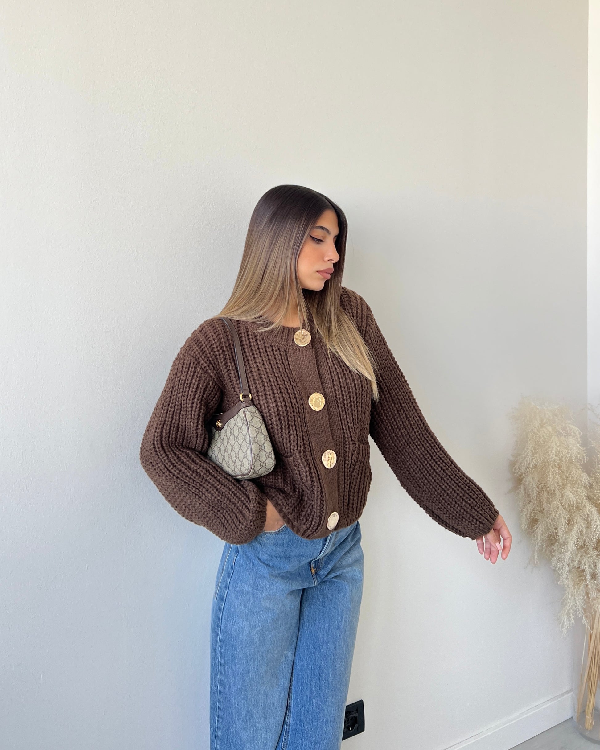 Maglione maglia larga con bottoni dorati caffè