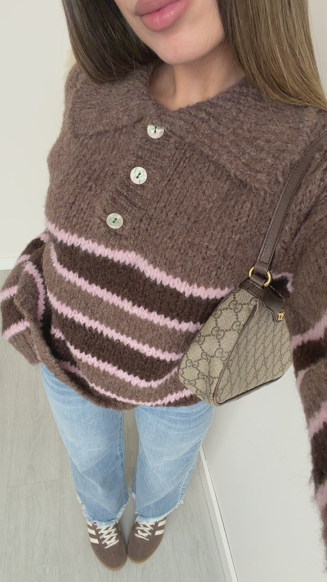 Maglione polo a righe cacao