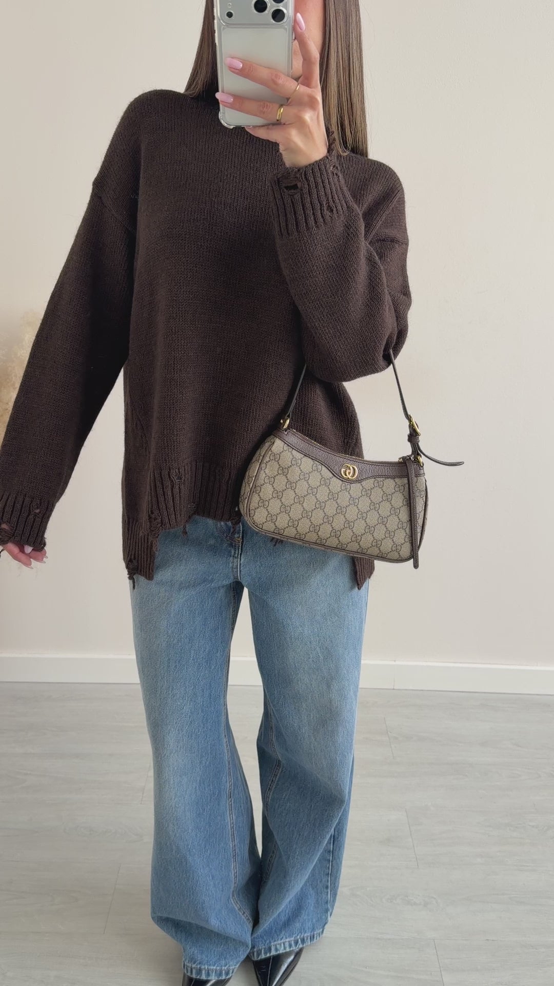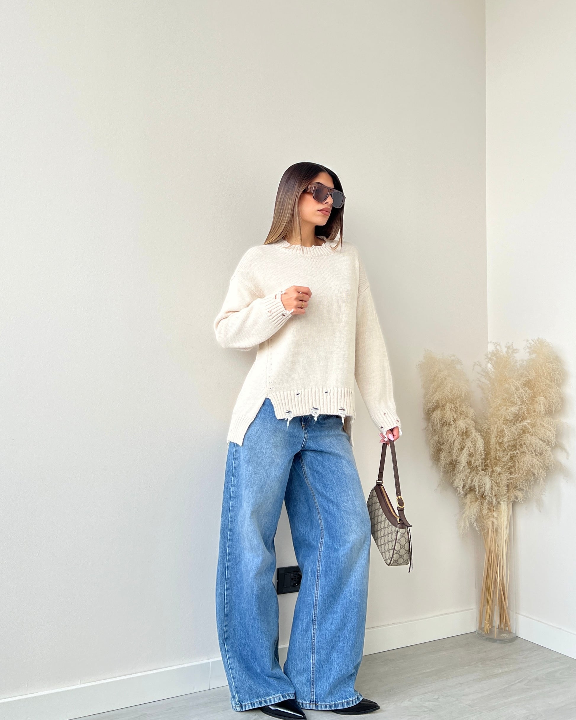 Maglione sfrangiato taglio vivo beige