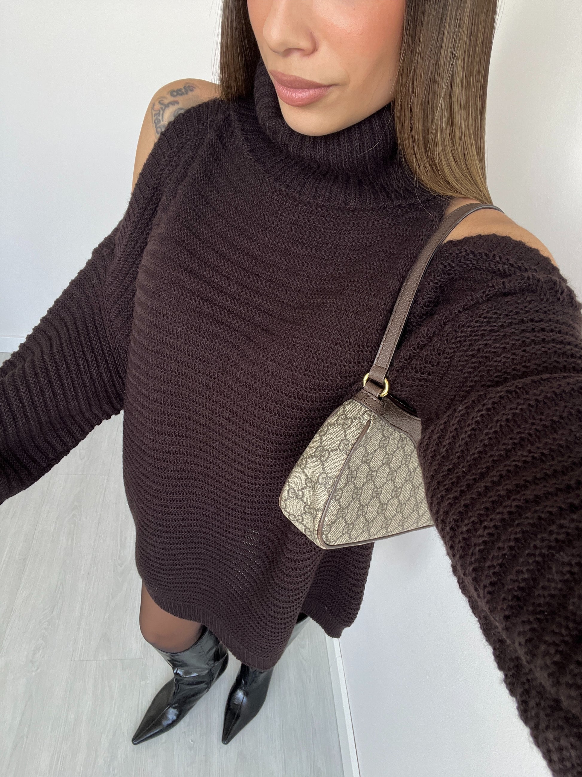 Maxi pull cut out sulle spalle testa di moro