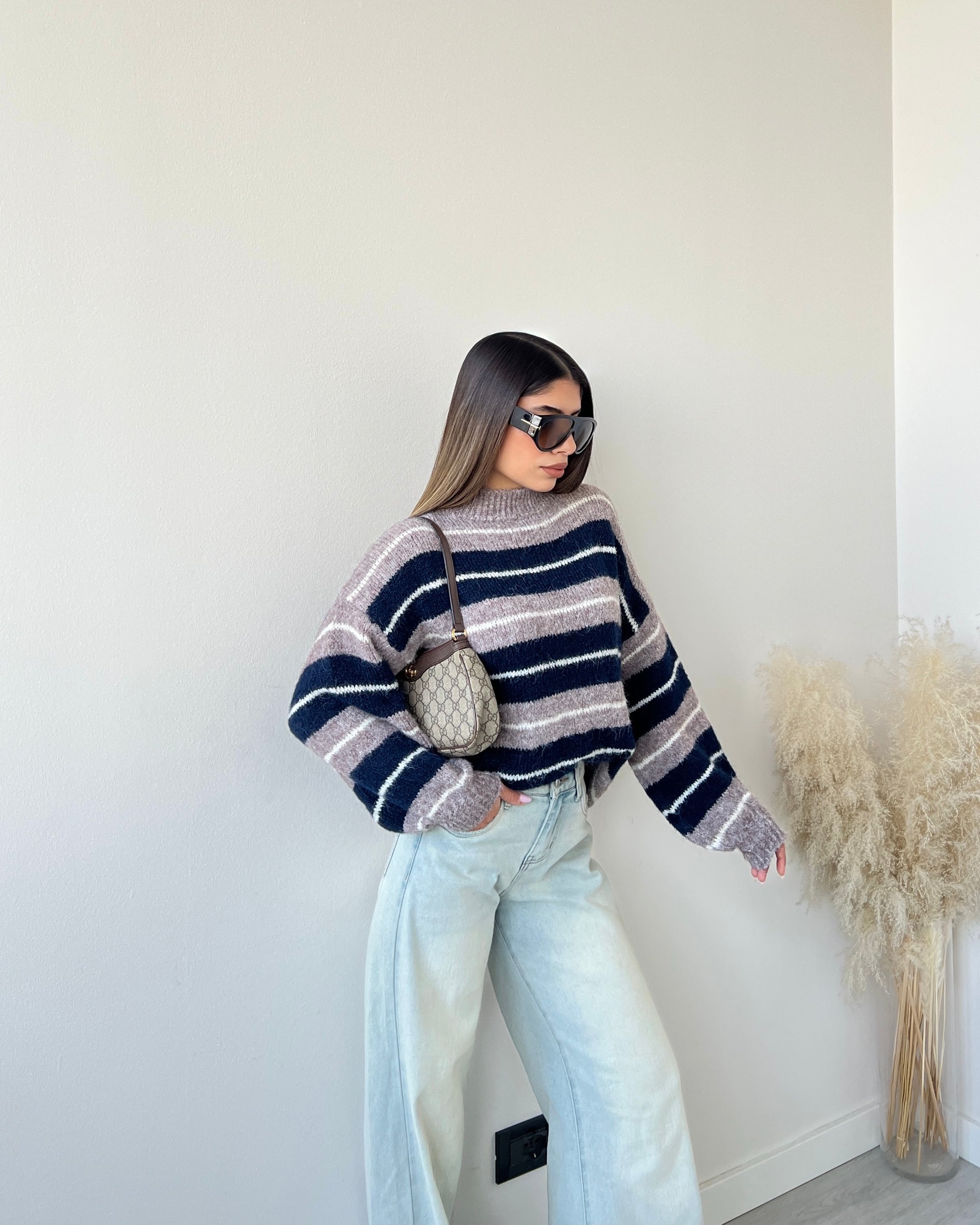 Pullover a righe lavanda e blu