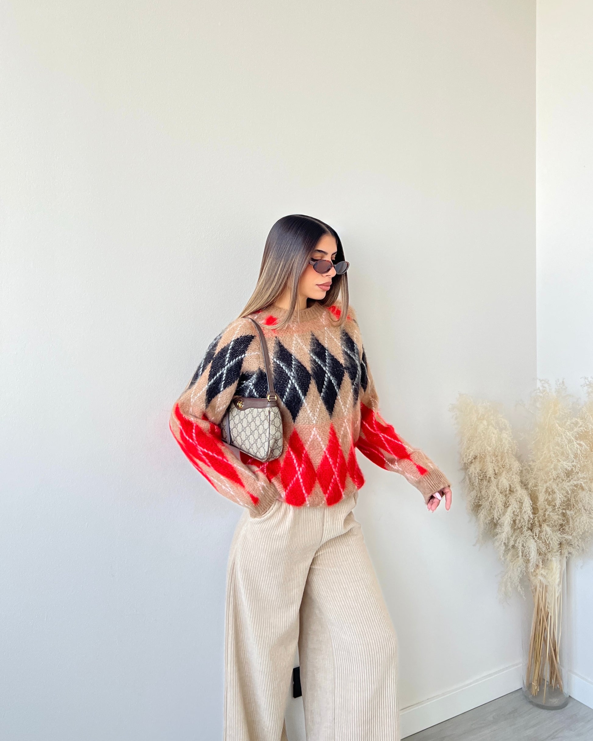 Pullover England camel arancio e nero