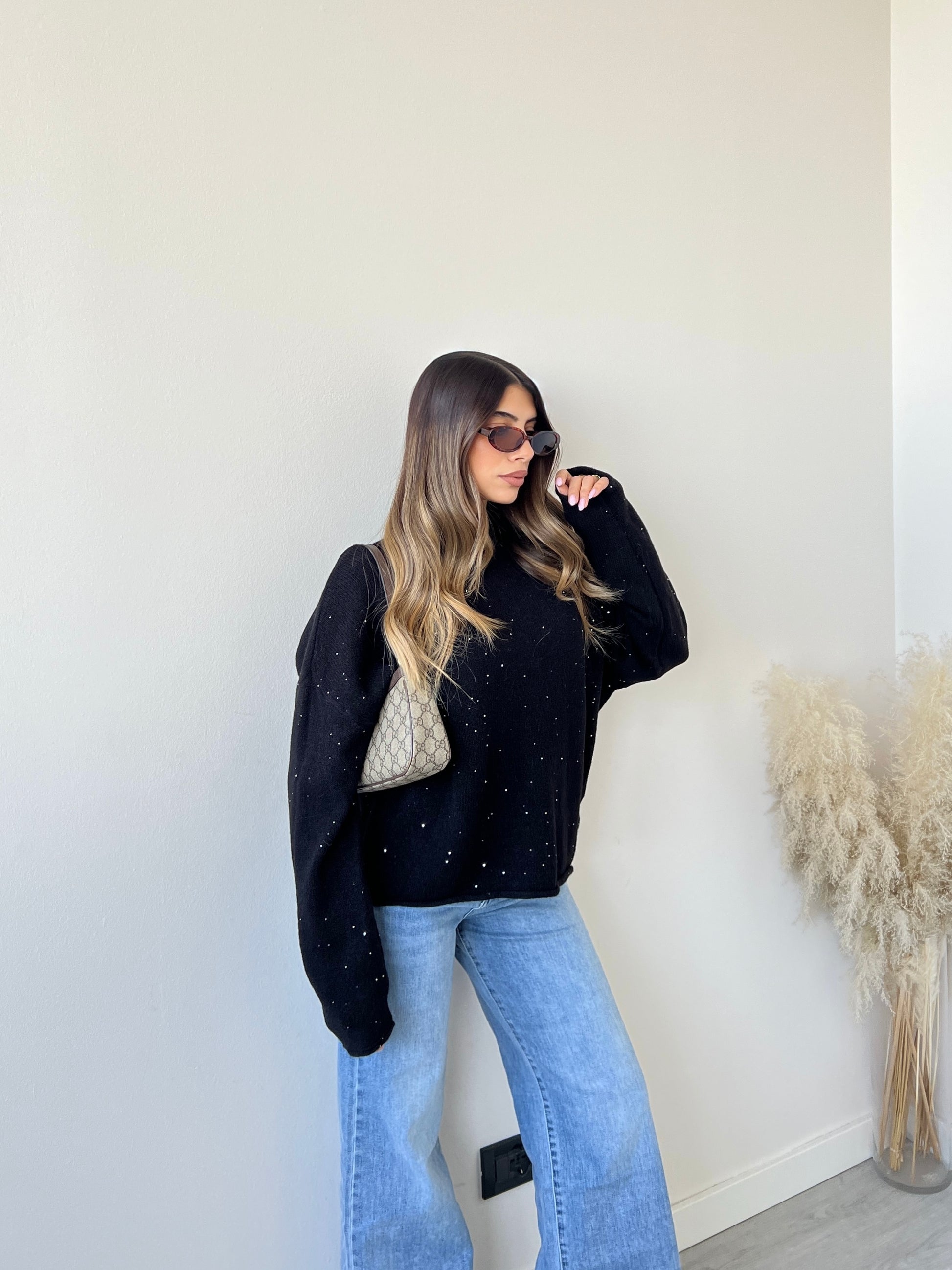 Pullover Laura con paillettes nero