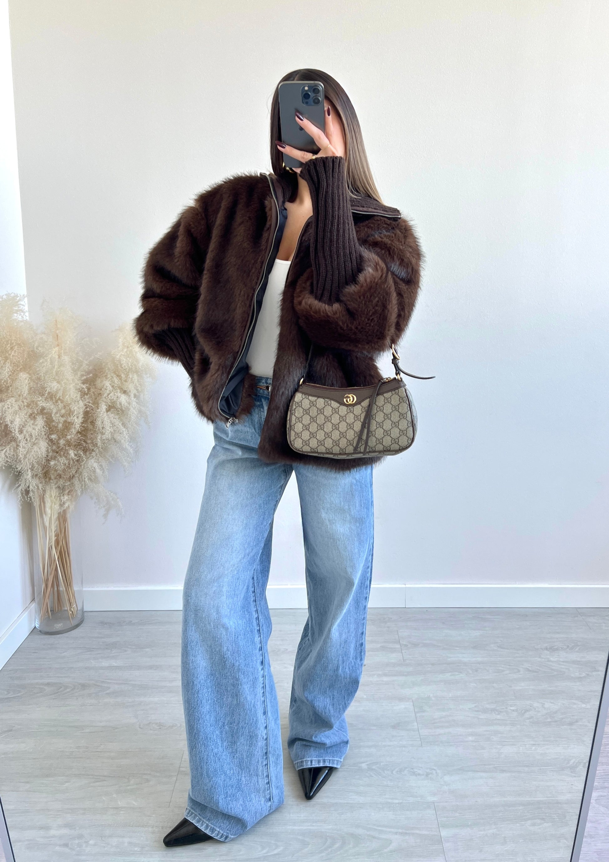 Ecopelliccia con polsini testa di moro