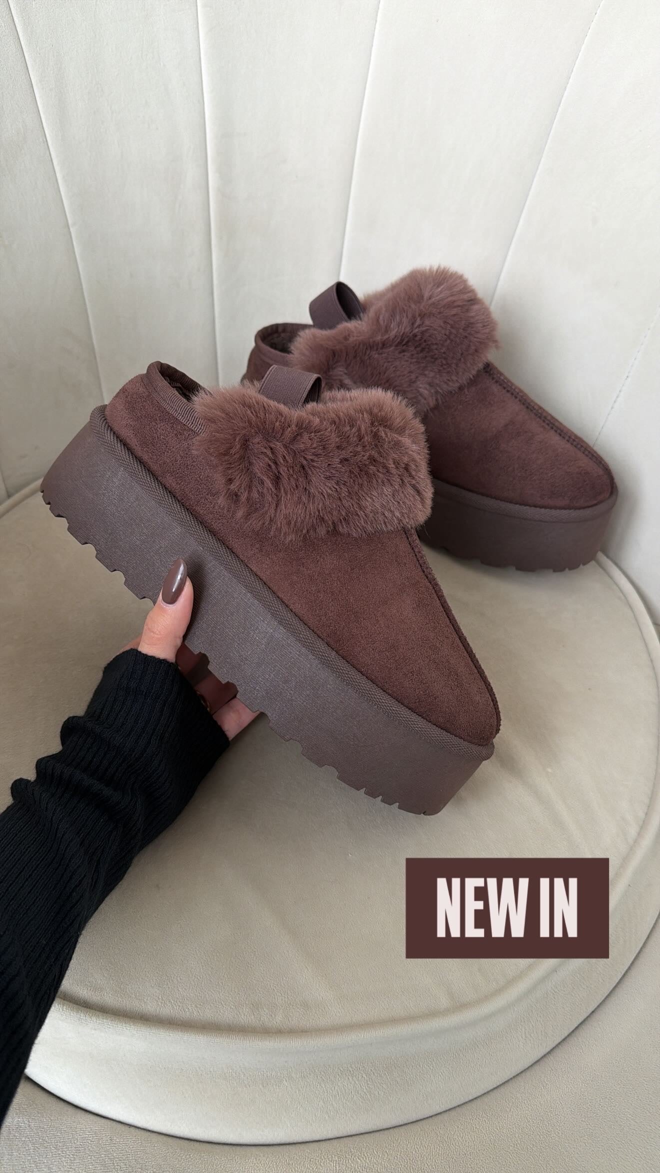 Sabot pltaform con elastico e pelo brown 9135