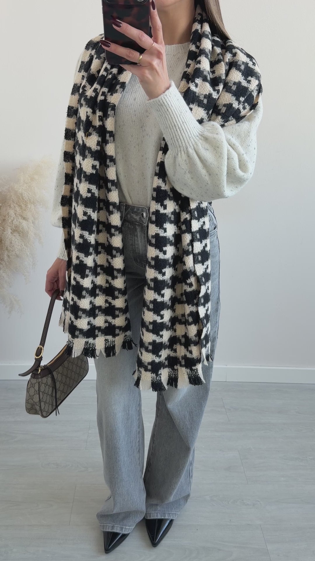 Sciarpa maxi pied de poule panna e nera