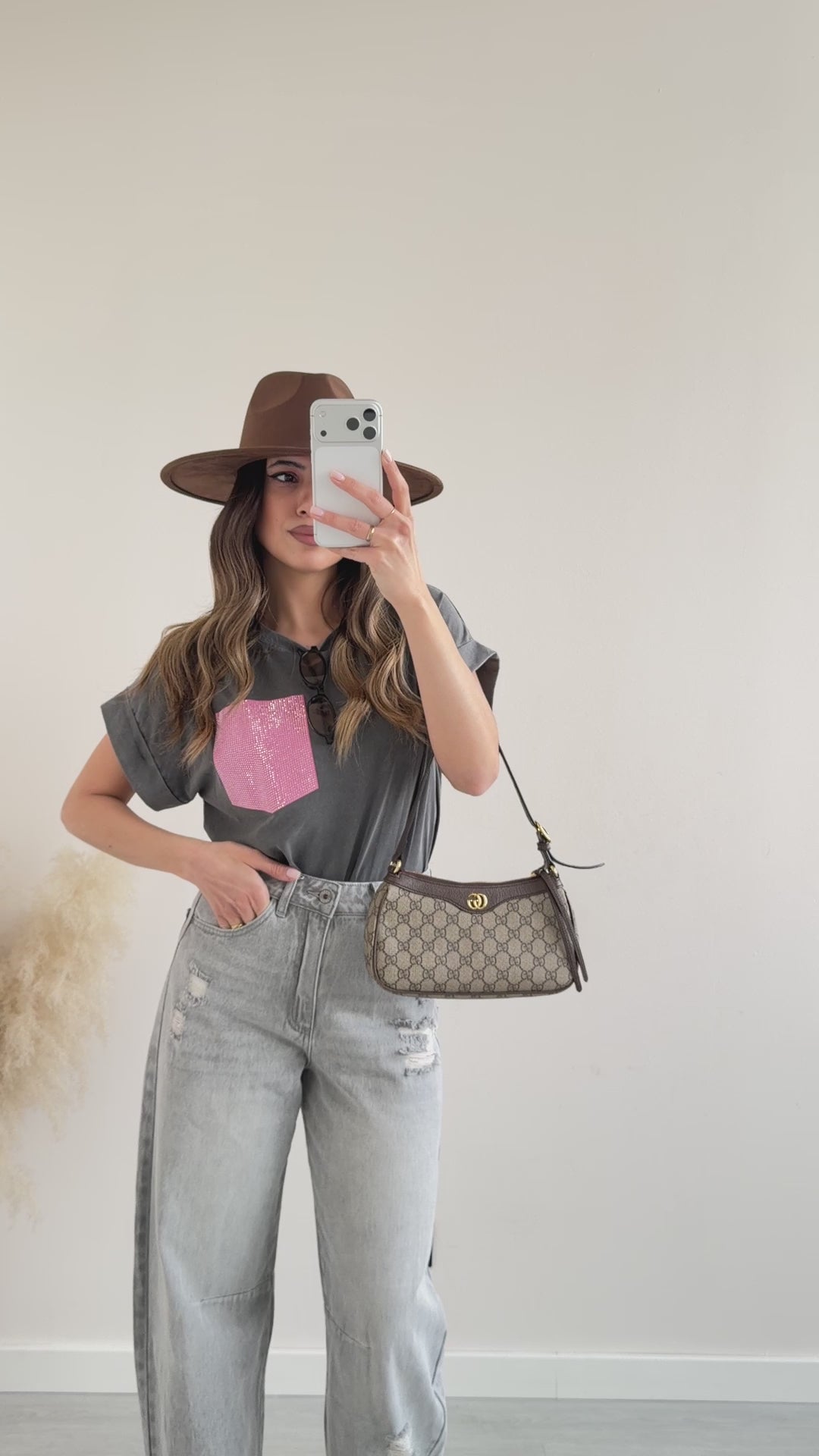 T-shirt tasca rosa con brillanti bianca