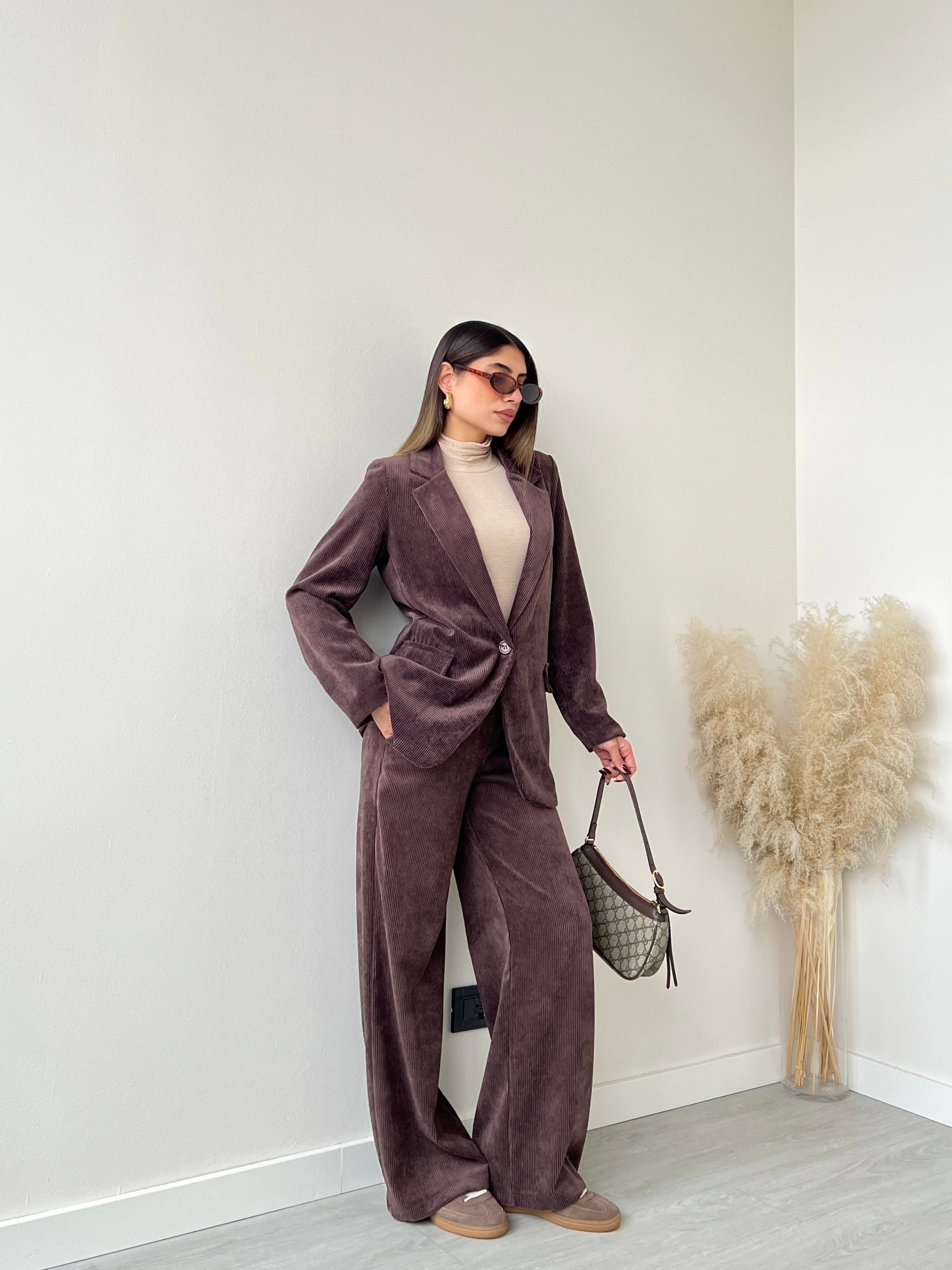Tailleur velluto a coste caffè